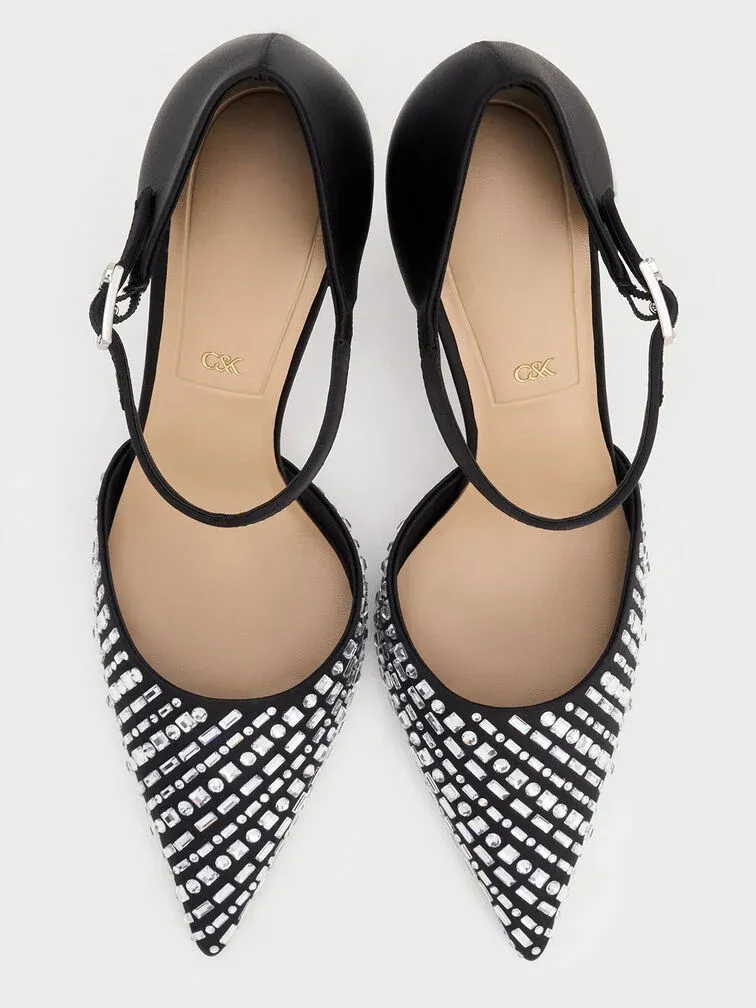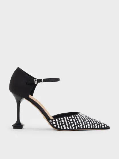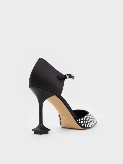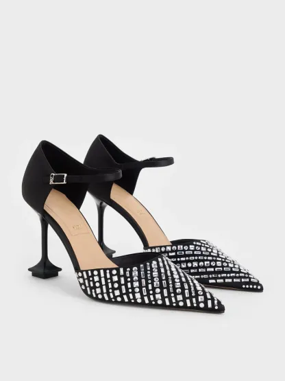 Jacqueline Crystal Sculptural-Heel Pumps - black textured