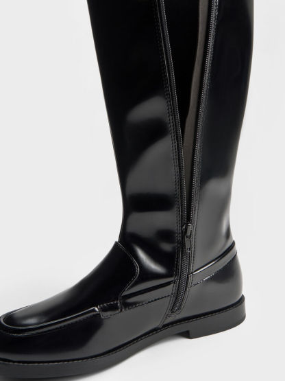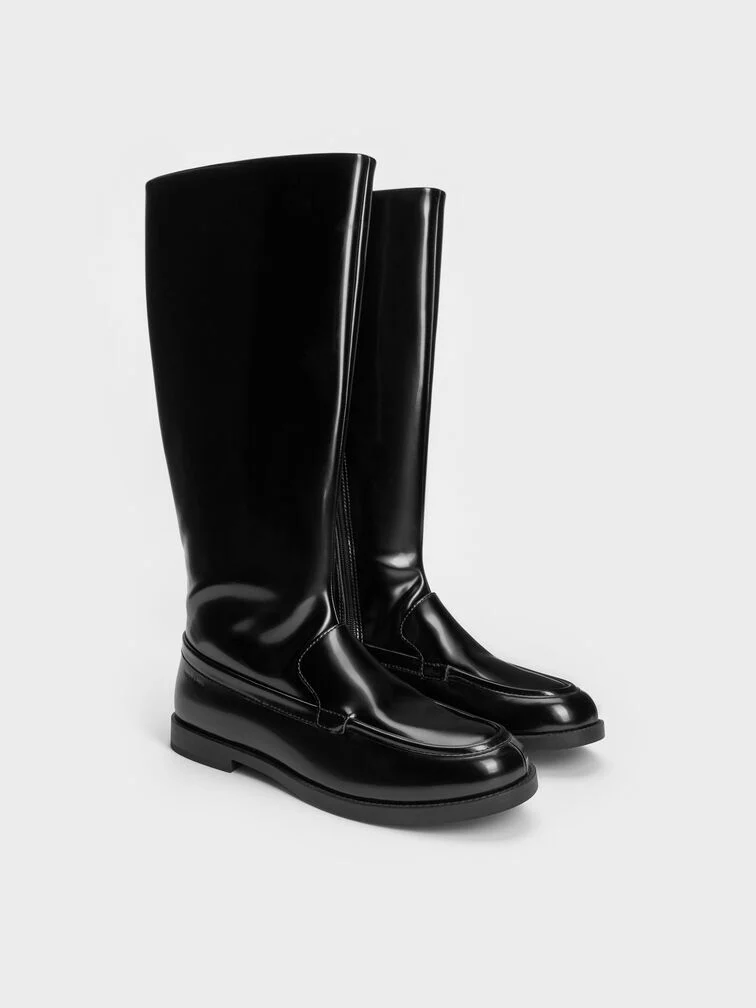 These Jagger knee-high boots in black feature softly rounded toes, knee-high shafts and a hybrid loafer design. Wear them with artfully layered fall-winter looks -- they will keep you warm and looking chic.