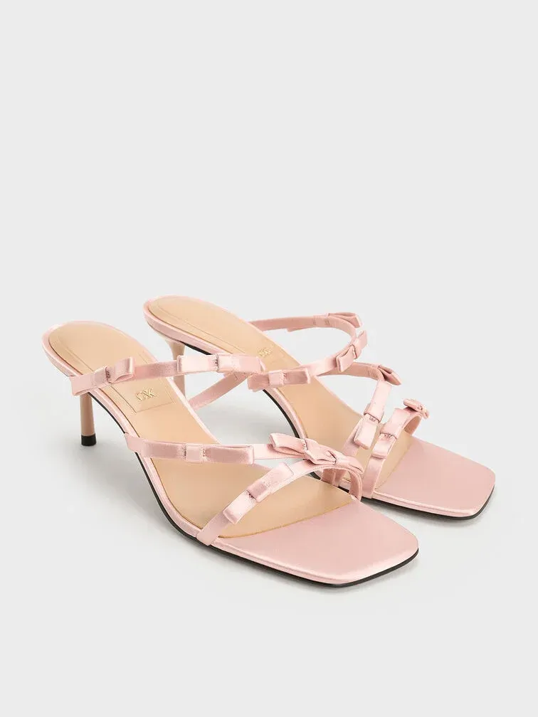 Found: the perfect coquette heels. Featuring dainty little bows that cover the strappy uppers, these pretty pink shoes are a must-have for all girly girls. Set on sleek stiletto heels, these shoes are perfect for dressy events, such as parties and weddings.