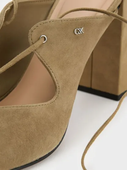 These Jianna sandals in military green are made with suede and feature chunky trapeze block heels, chic lace-up details and tie-around ankle straps. Let them complement bold special-occasion outfits with their outstanding design.