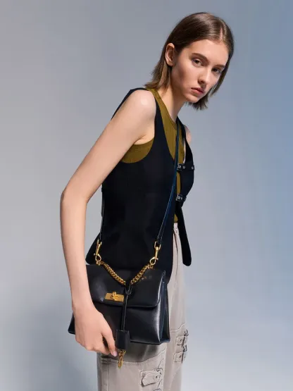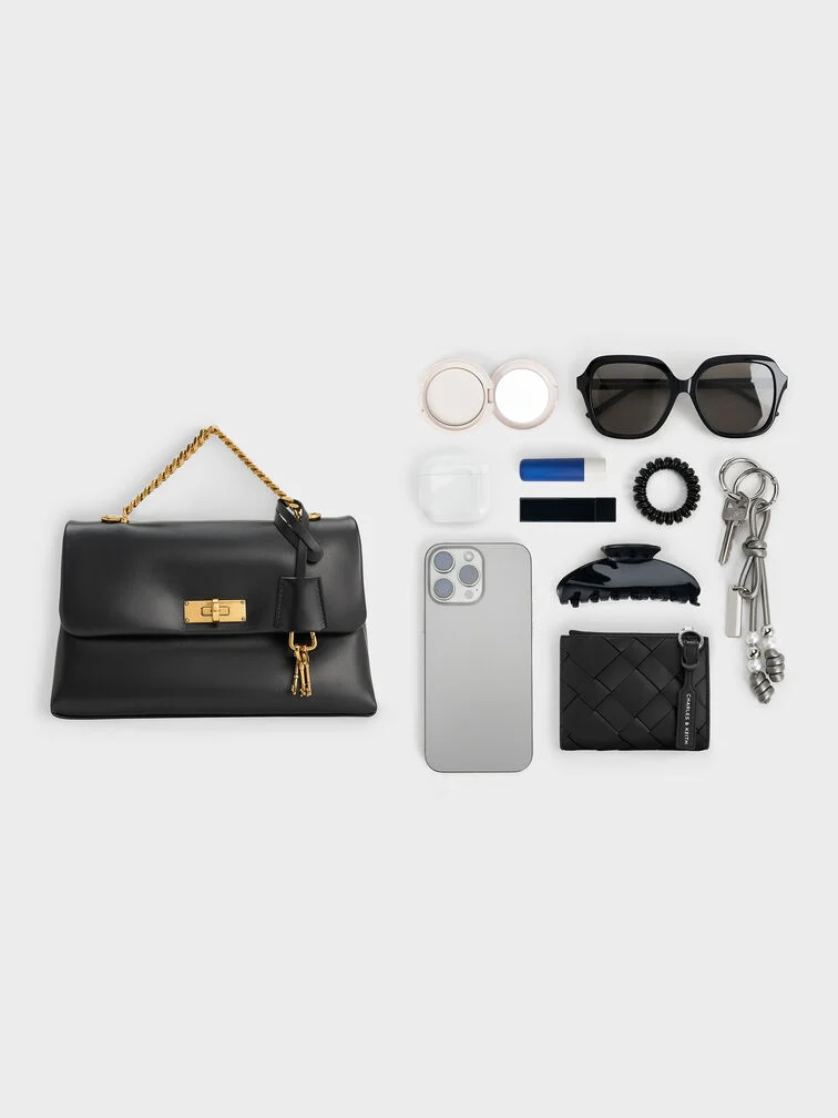 This chic Kerry crossbody bag in timeless black opens up to gusseted compartments that lets you keep your belongings neat and organised. The chunky chain detail adds dramatic flair while offering styling versatility. Attach the accompanying shoulder strap for hands-free convenience.