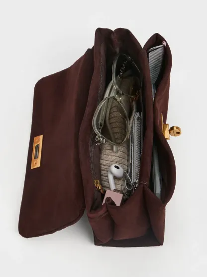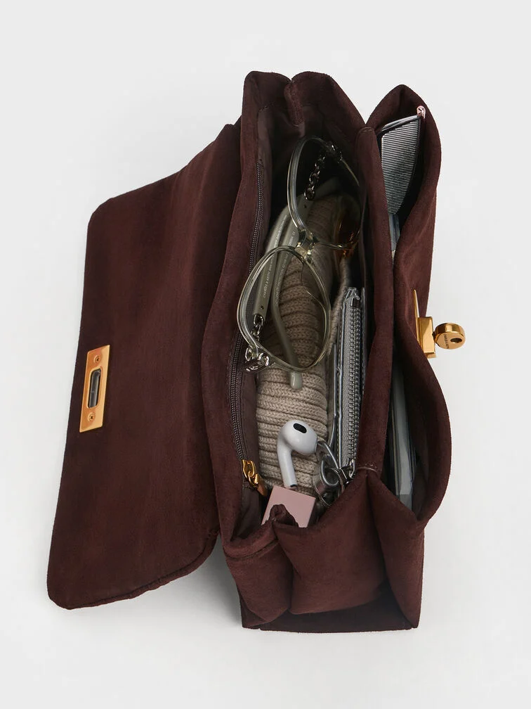 This Kerry crossbody bag in espresso brown features a chain handle, compact construction and a turn-lock closure. It also comes with a detachable shoulder strap. Use it to complement smart workday looks or to elevate off-duty outfits.