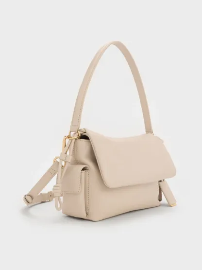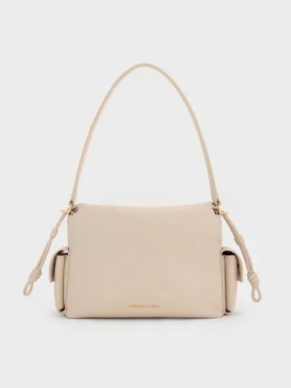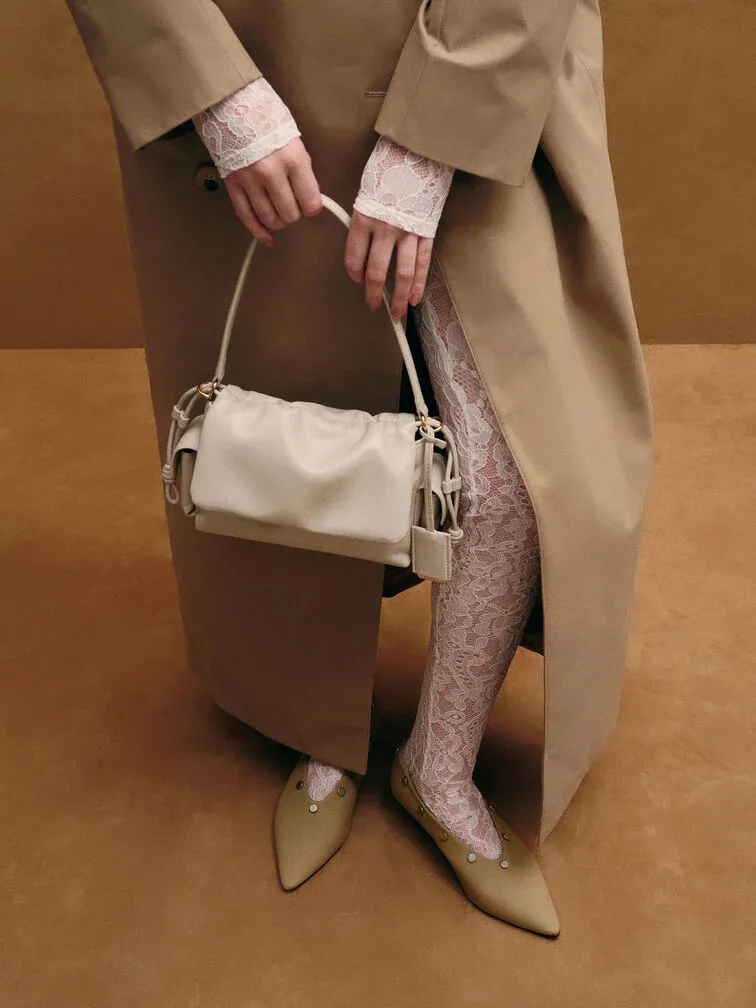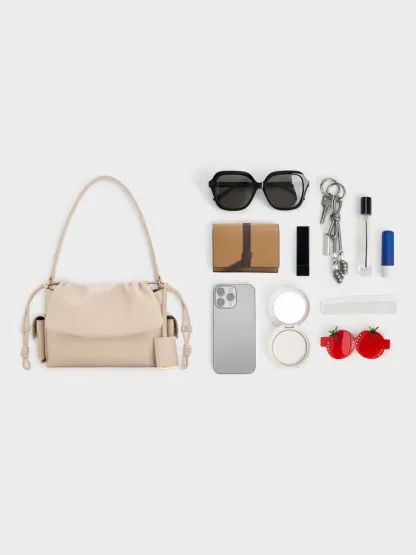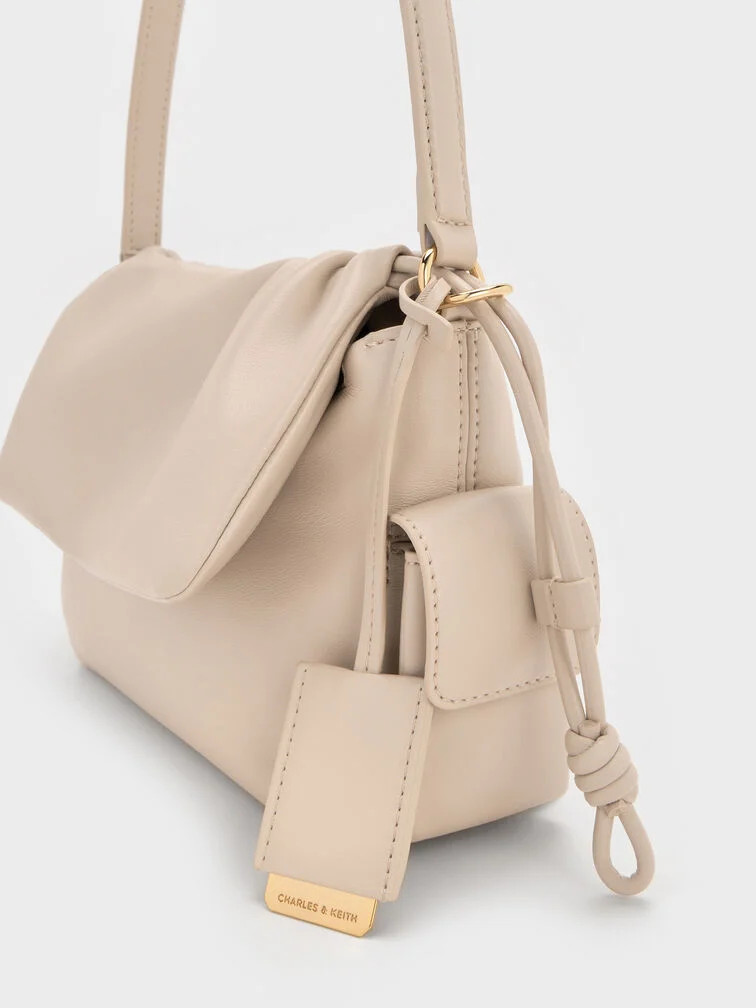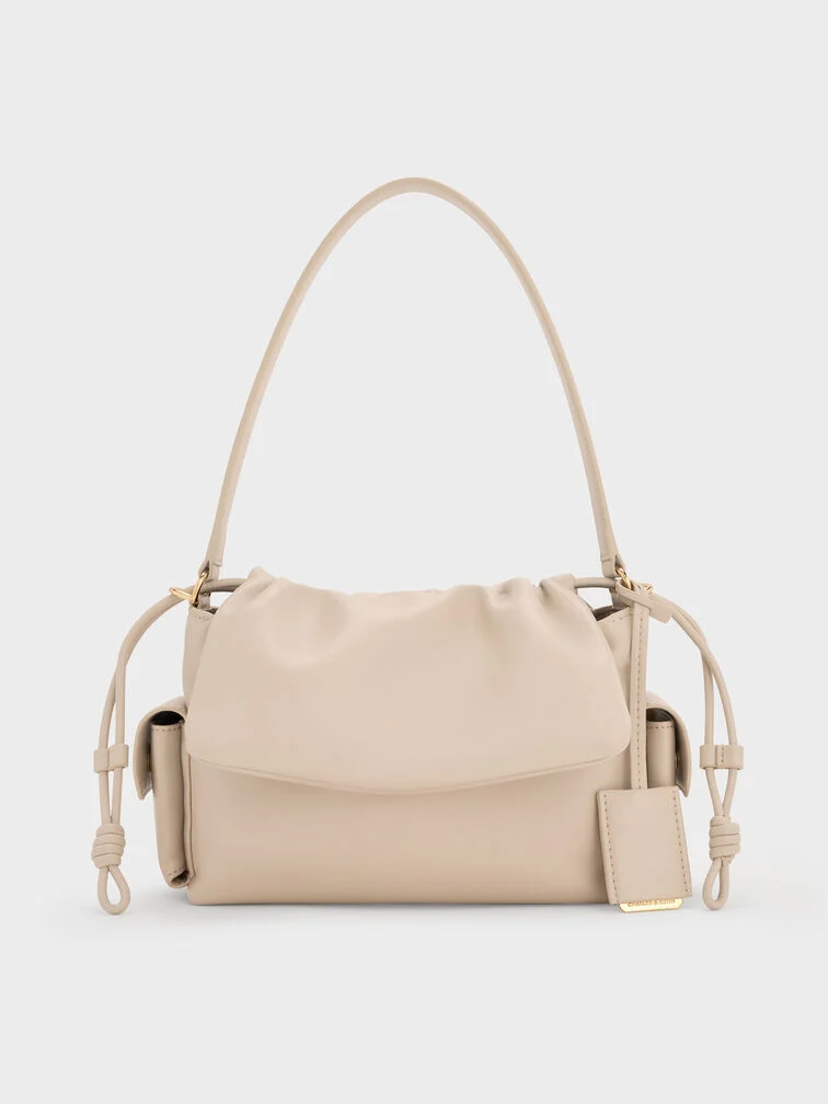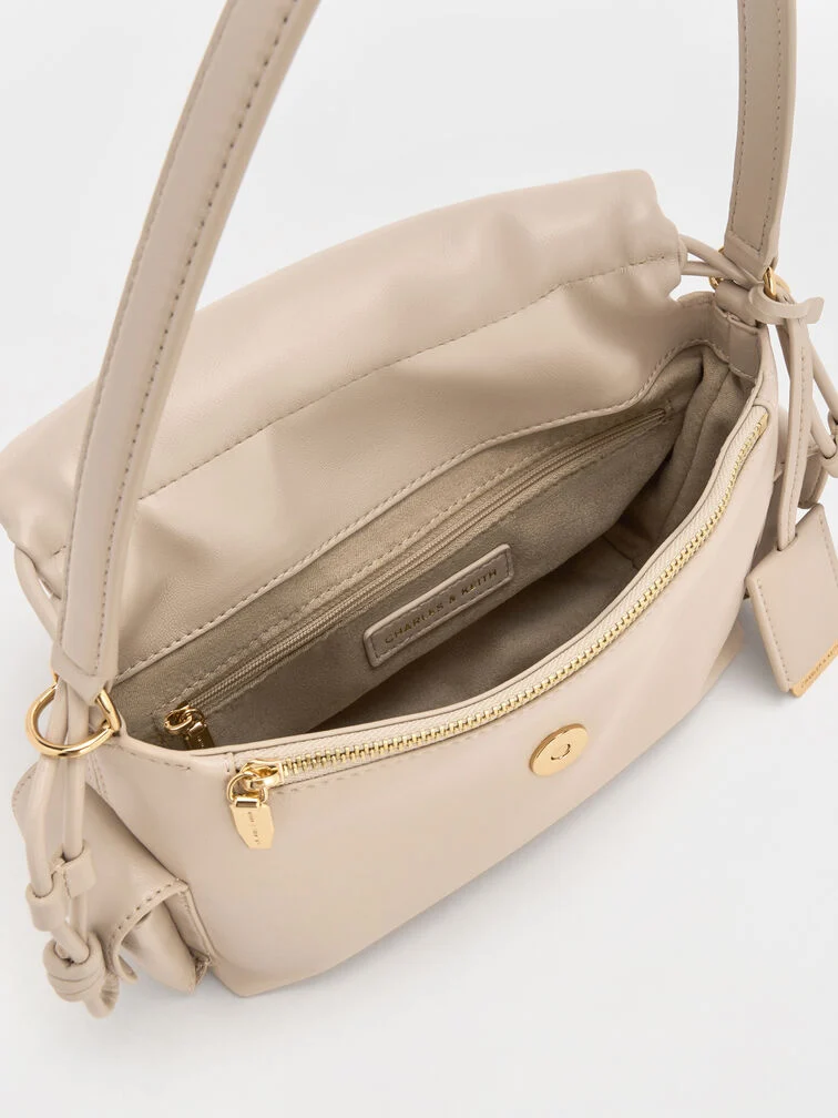 This Khai top handle bag in oat features a ruched flap, side pockets and a softly structured construction. Carry it to introduce sculptural texture and stylish function into your everyday looks