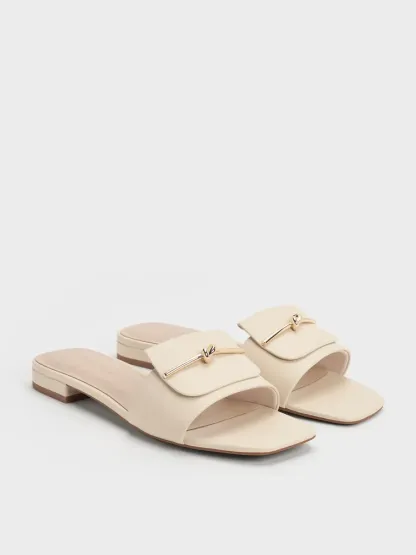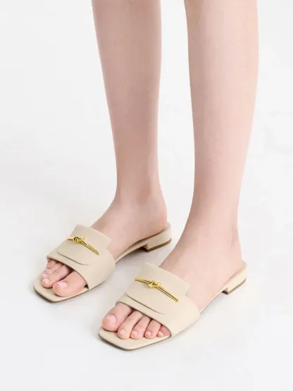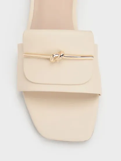 Versatile and sophisticated, these slide sandals make a strong case for the slip-and-go style. In a match-all chalk colourway, they will fit in seamlessly with most of your outfits. Adorned with gold-tone hardware by way of the sleek knotted metallic accent on the tabs, they are a worthy addition to any fashion arsenal.