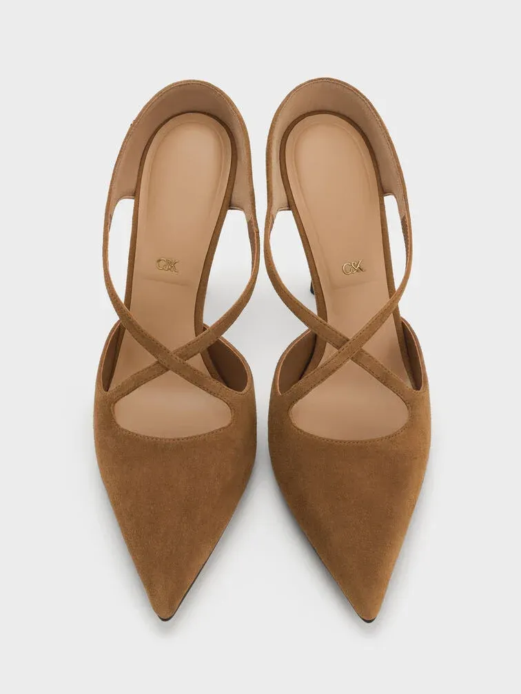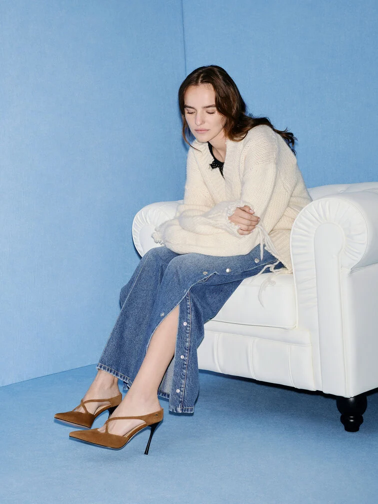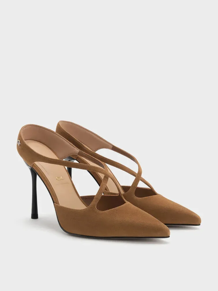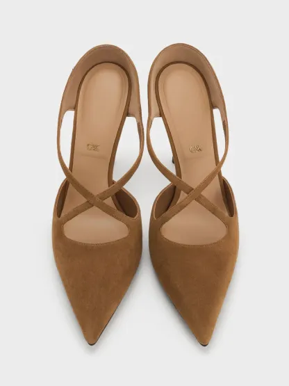 Kyra Suede Crossover Stiletto Mules - brown