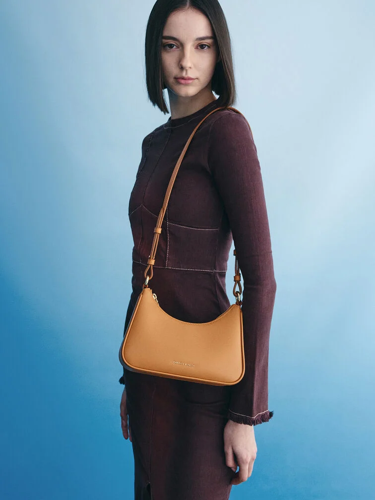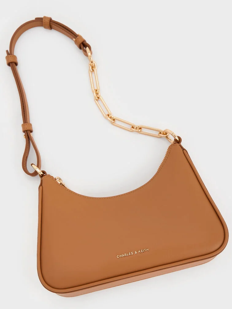 For those seeking a refreshing alternative to neutral black bags, consider russet brown. This chain-link shoulder bag features a rich reddish-orange undertone that will add warm elegance to your everyday outfits. The gold-toned chain strap perfectly complements the design, adding a touch of glamour.