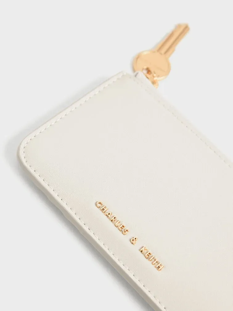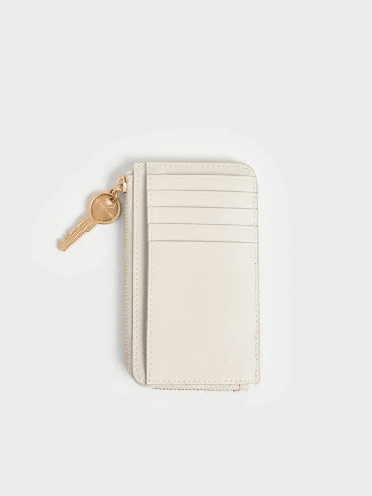 Give your essentials a classy home in this mini wallet. Featuring a compact size and a fresh cream white colour, this piece knows what it is doing when it comes to both function and style. Take note of the unique key feature that replaces the normal zipper pull tab, spicing up the minimalist design. Perfect for the modern woman to slip into her bag and start the day.
