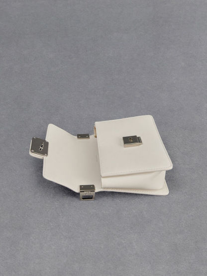 Leather Boxy Bag - white