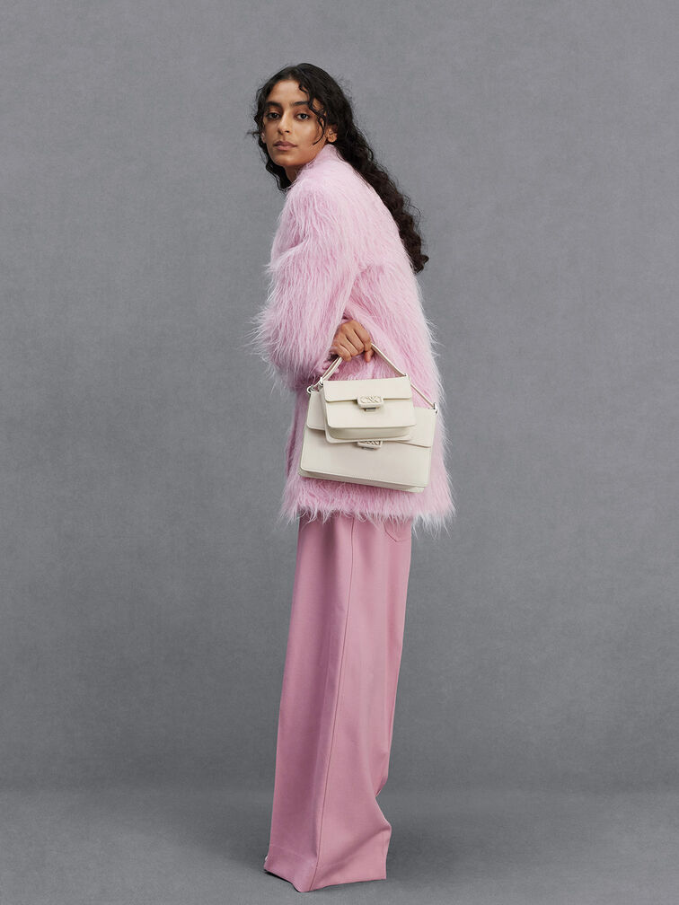 A polished and pristine all-white leather bag is an investment-worthy piece that deserves a spot in your capsule wardrobe - our boxy bag is a case in point. Made with genuine calf leather, this bag feels as luxurious as it looks. It opens up to a roomy main compartment that can hold your essentials and then some. The matching white hardware is polished and striking. Fitted with a thick shoulder strap that is also made with soft and supple leather, it will hang comfortably on your shoulder.