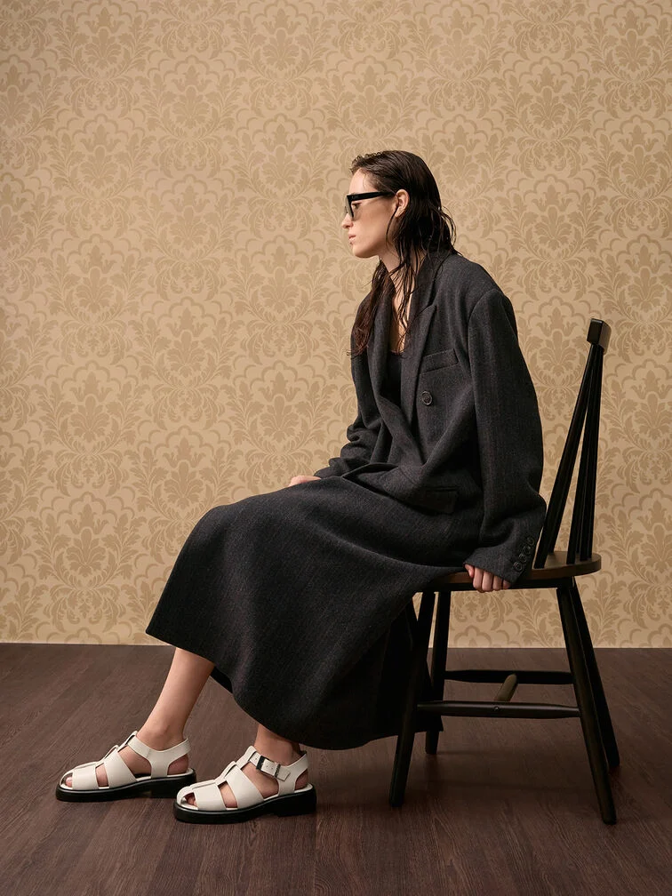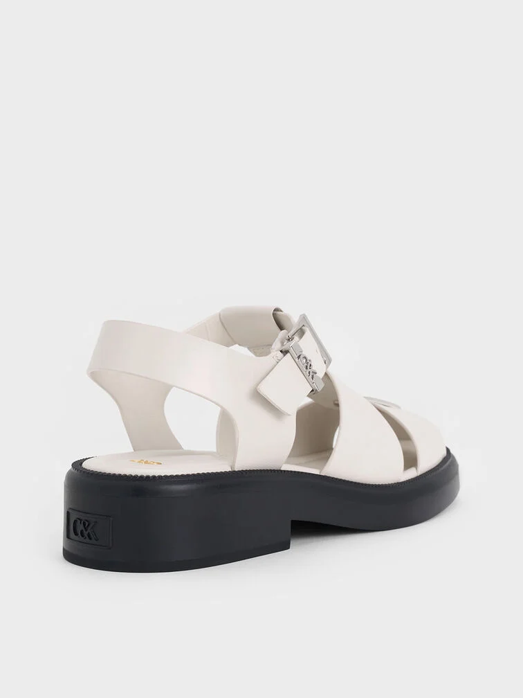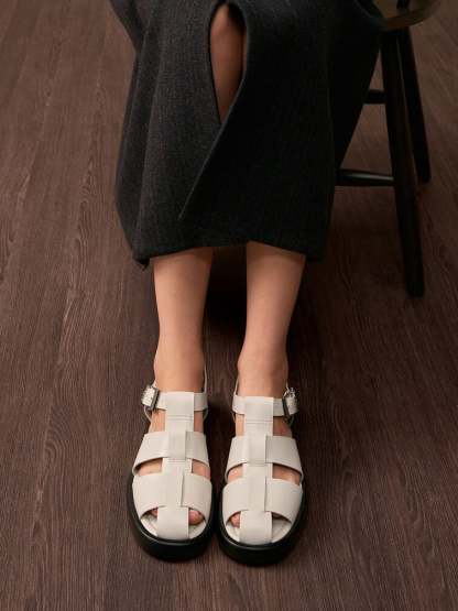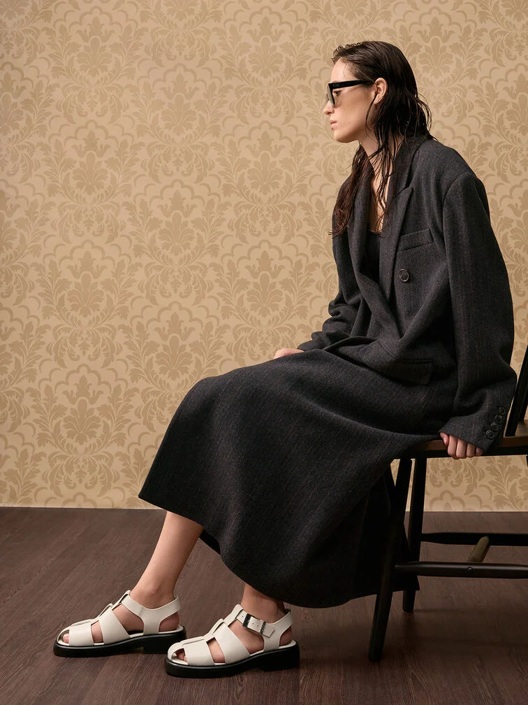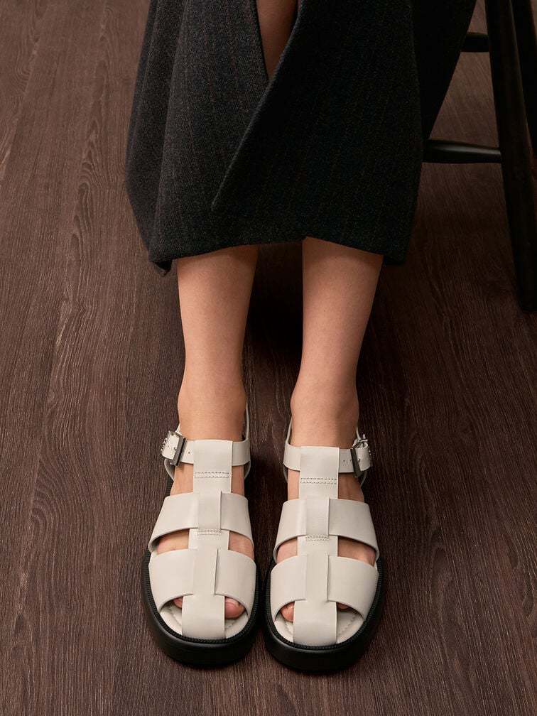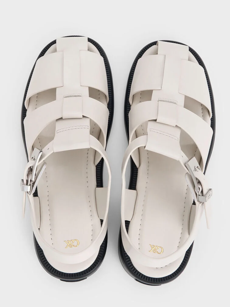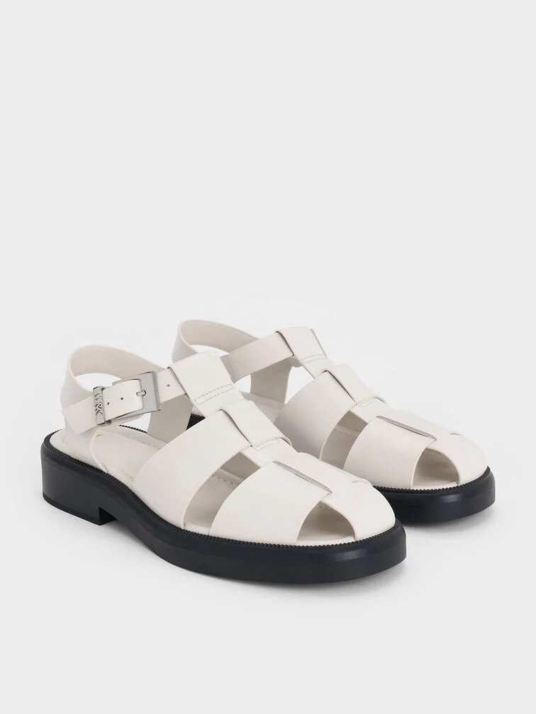 Leather Caged Sandals - chalk