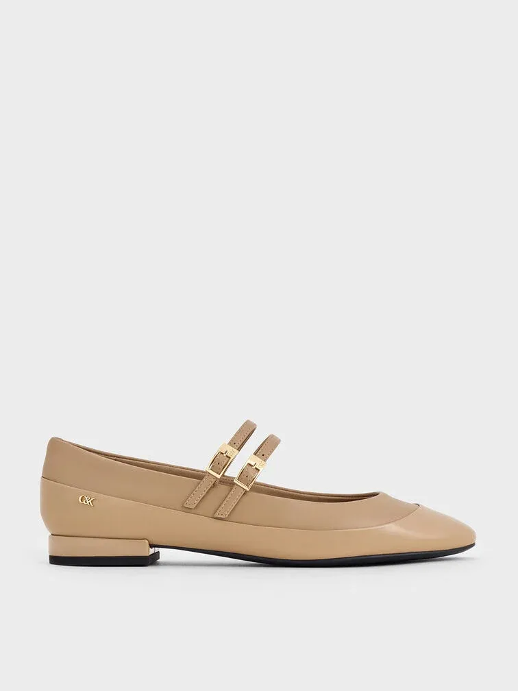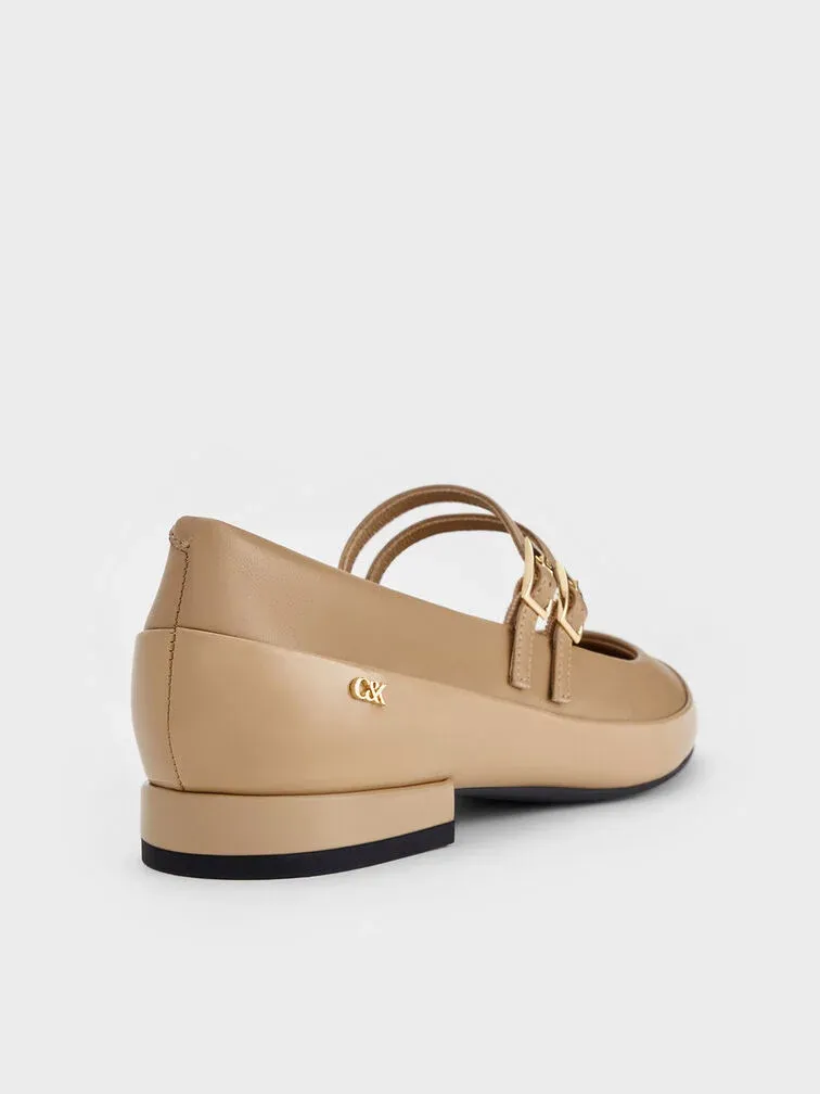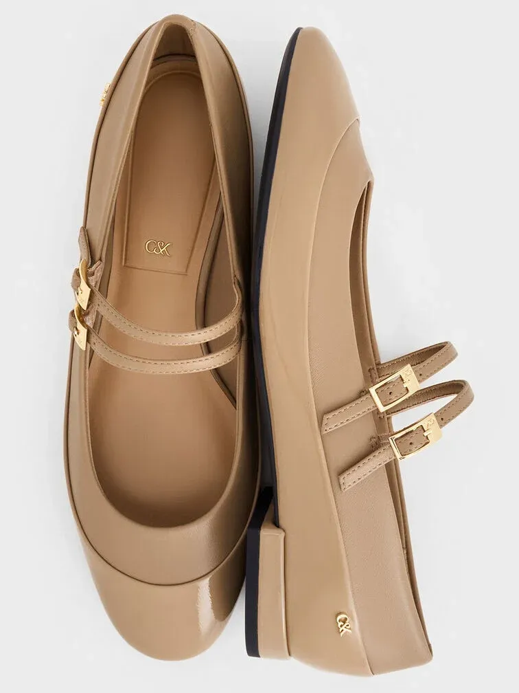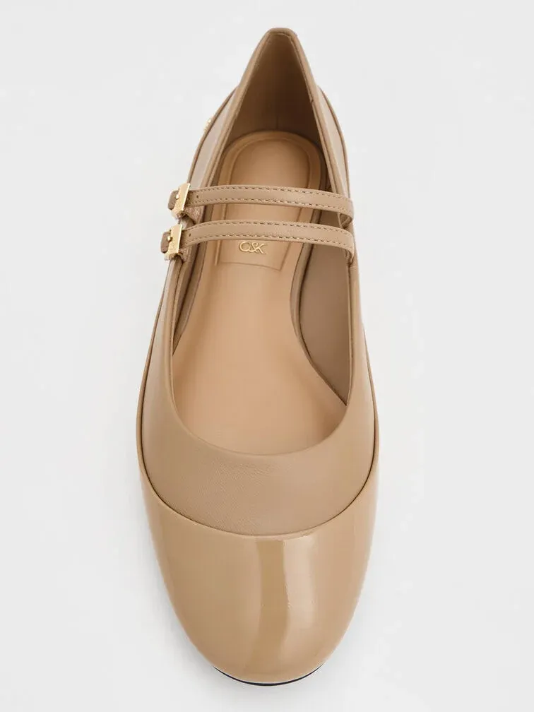 Leather & Patent Double-Strap Mary Jane Flats - taupe