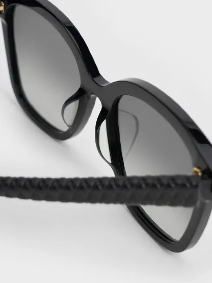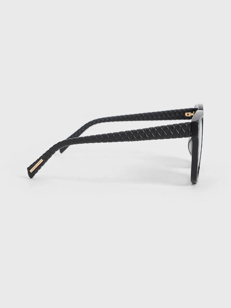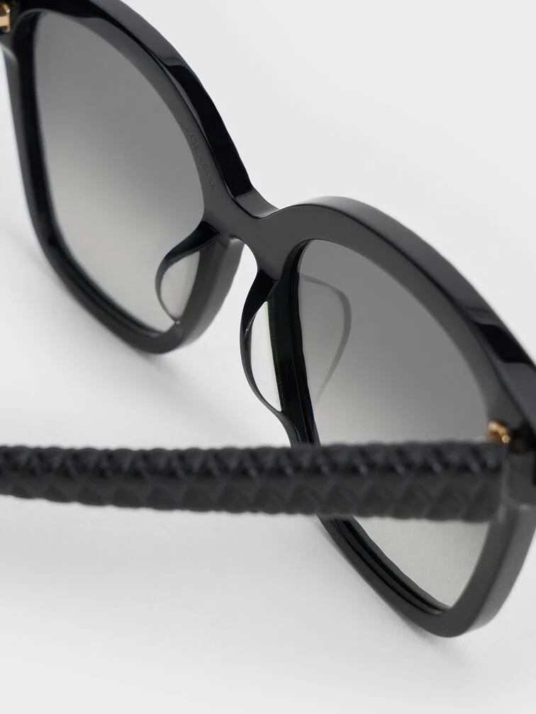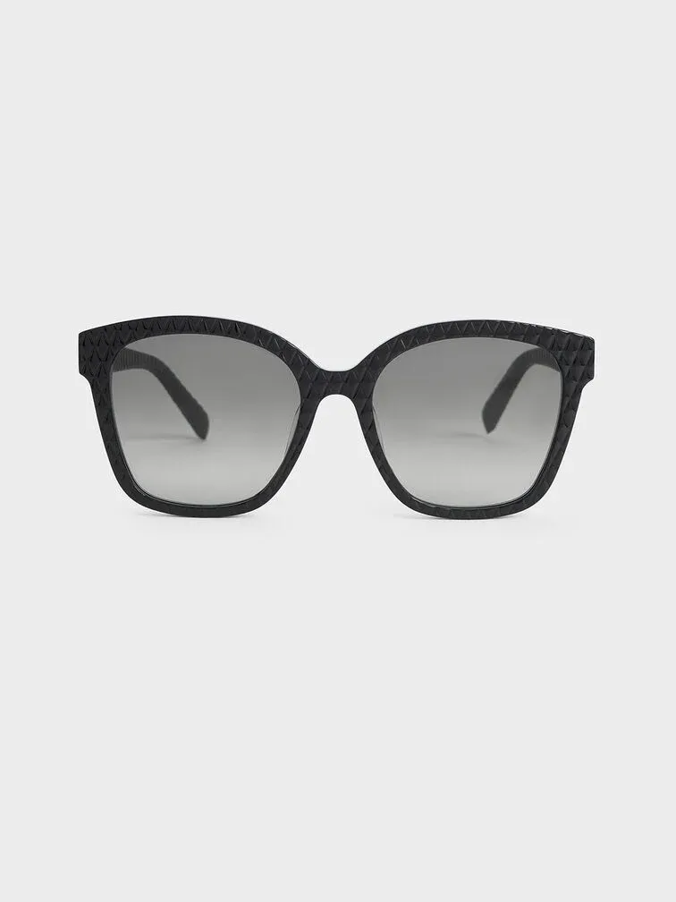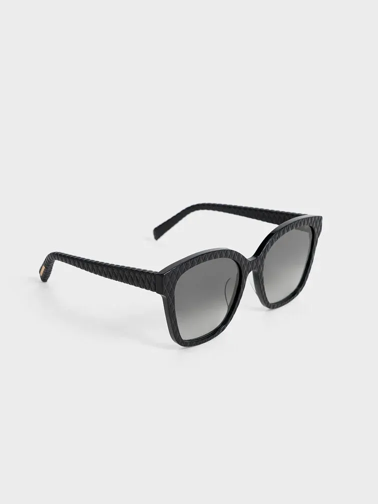 Although they feature a classic black finish, these sunglasses are anything but ordinary. The frames and temples are adorned with a textural quilted pattern, exuding stylish tactility. Despite the intricate detailing, they promise versatility and will complement a wide range of outfits. The classic square frames add a touch of polish and are particularly flattering for round faces.