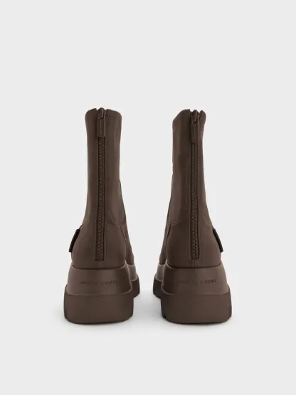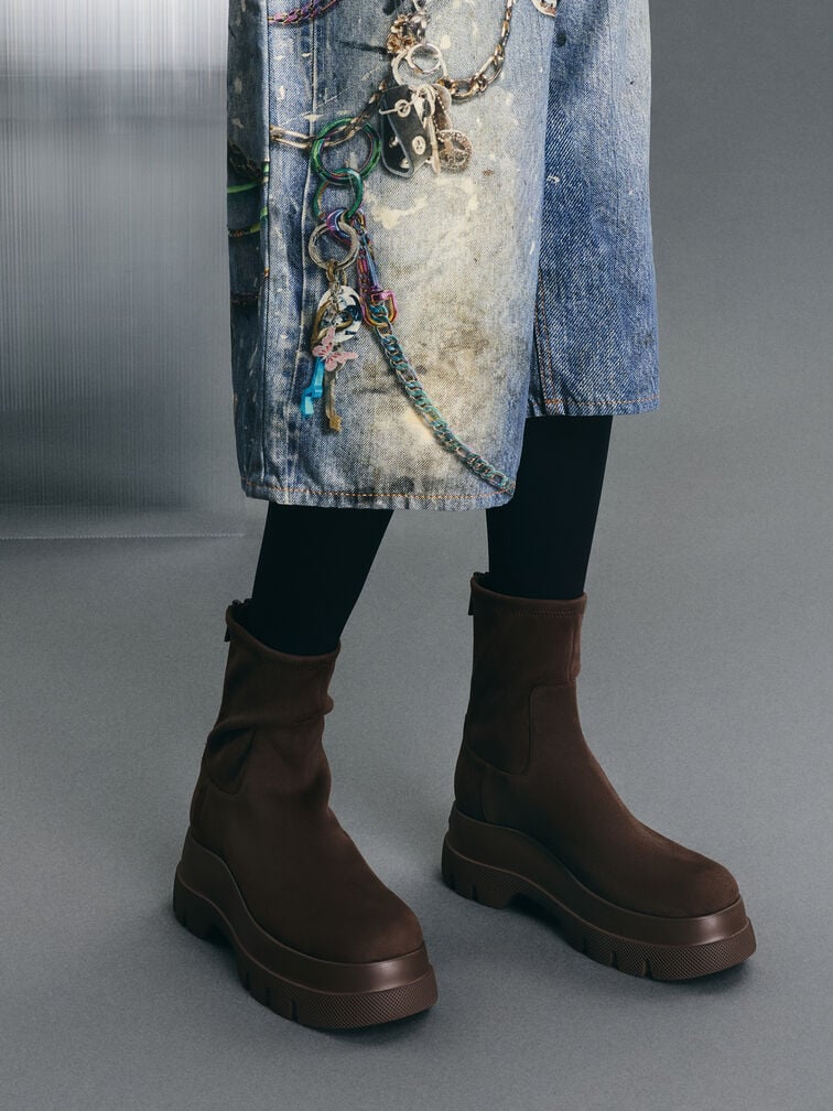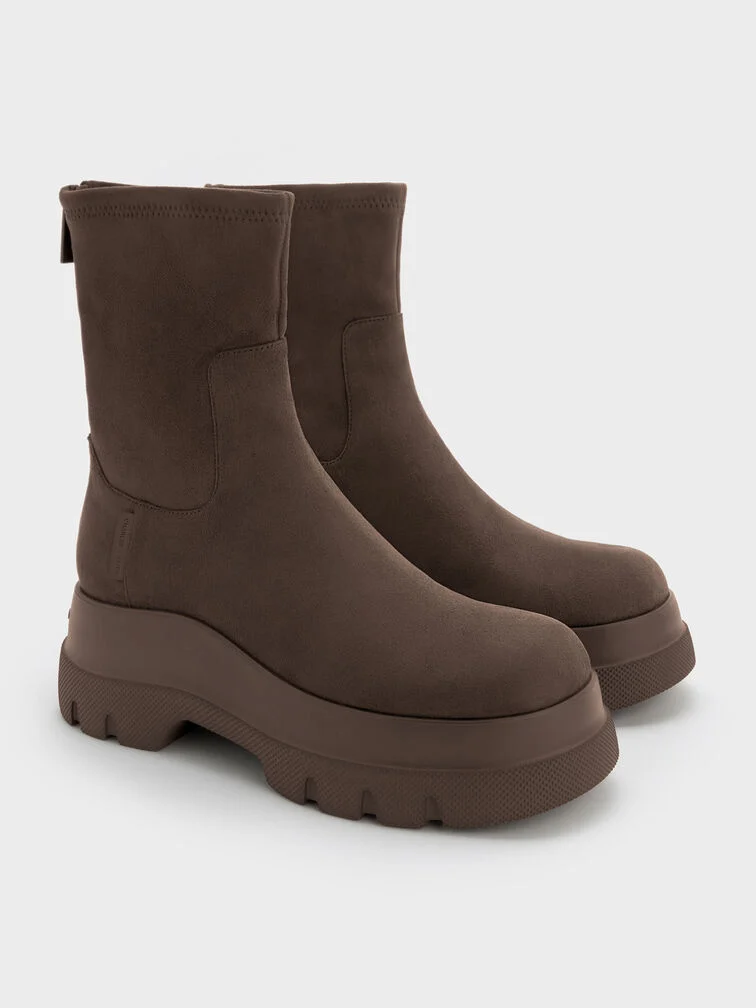 Leoi Faux Suede Chunky Ankle Boots - dark brown textured