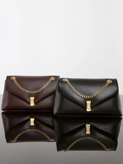 This Lilibet bag in black features a striking metallic buckle, a chain strap and an envelope design. Use it to add a touch of glamorous shine to both casual and dressy ensembles.