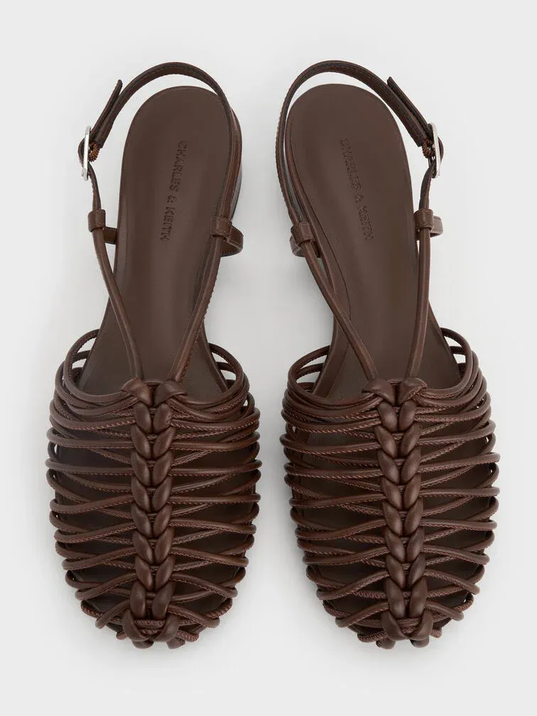 Linnea Woven Slingback Caged Sandals - brown