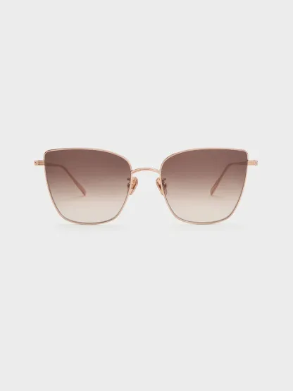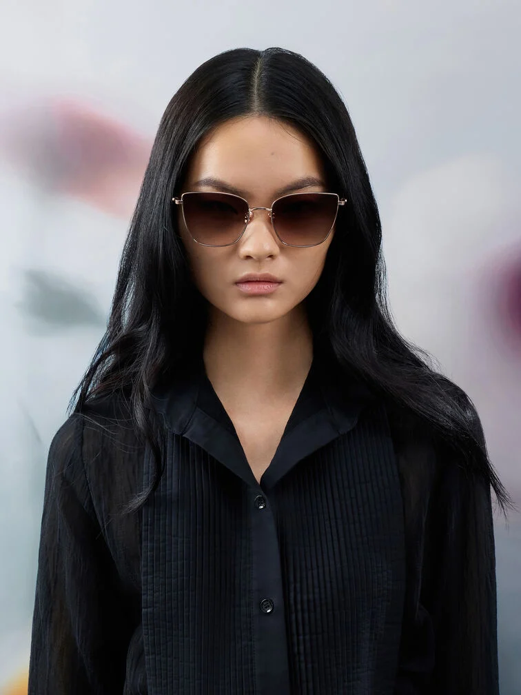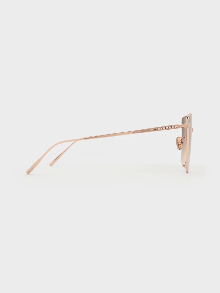 These Livonia sunglasses in rose gold feature crystal embellishments, metal rims, thin arms, and ombre square lenses. Wear them with your everyday outfits to inject a touch of understated glamour into your routine.