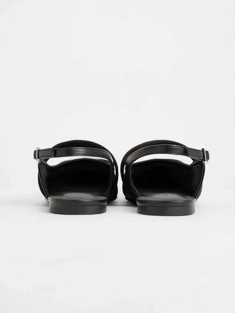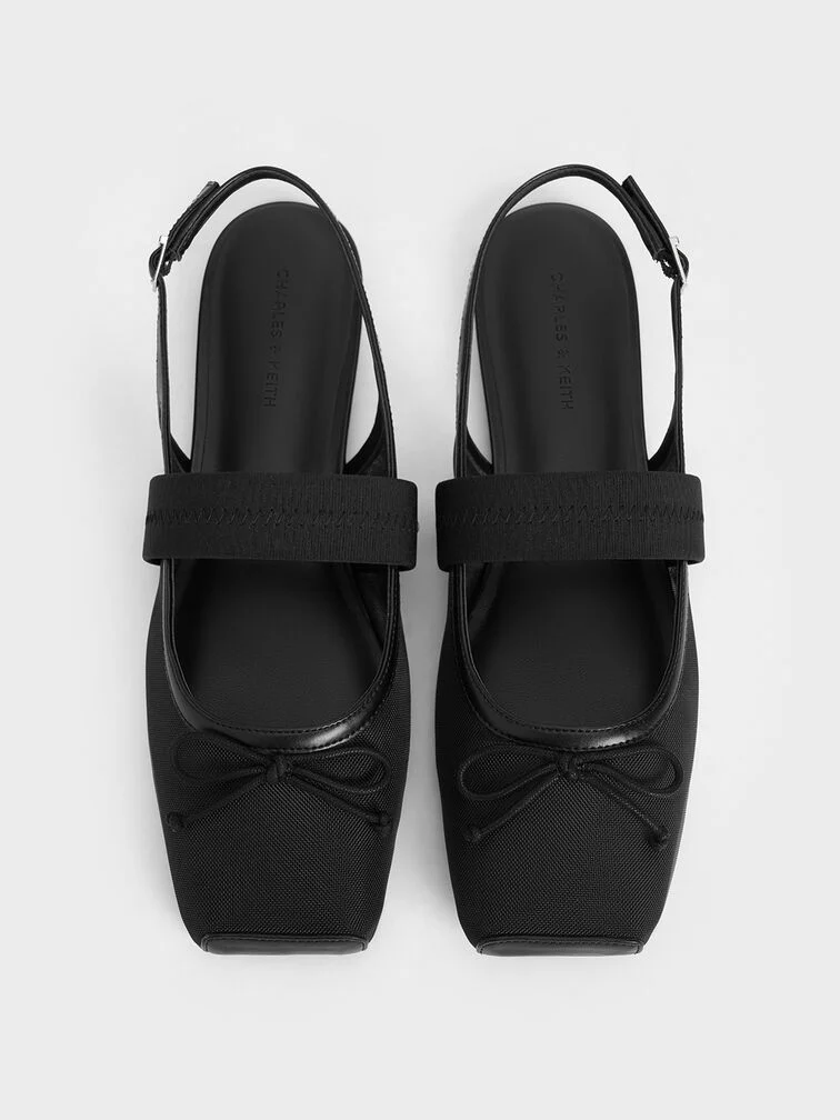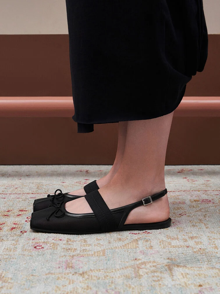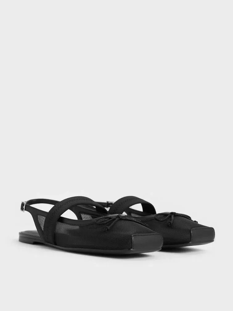 Lyric Mesh & Satin Bow Slingback Flats - black textured