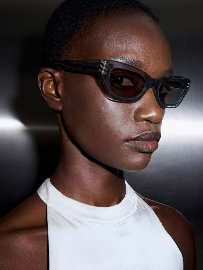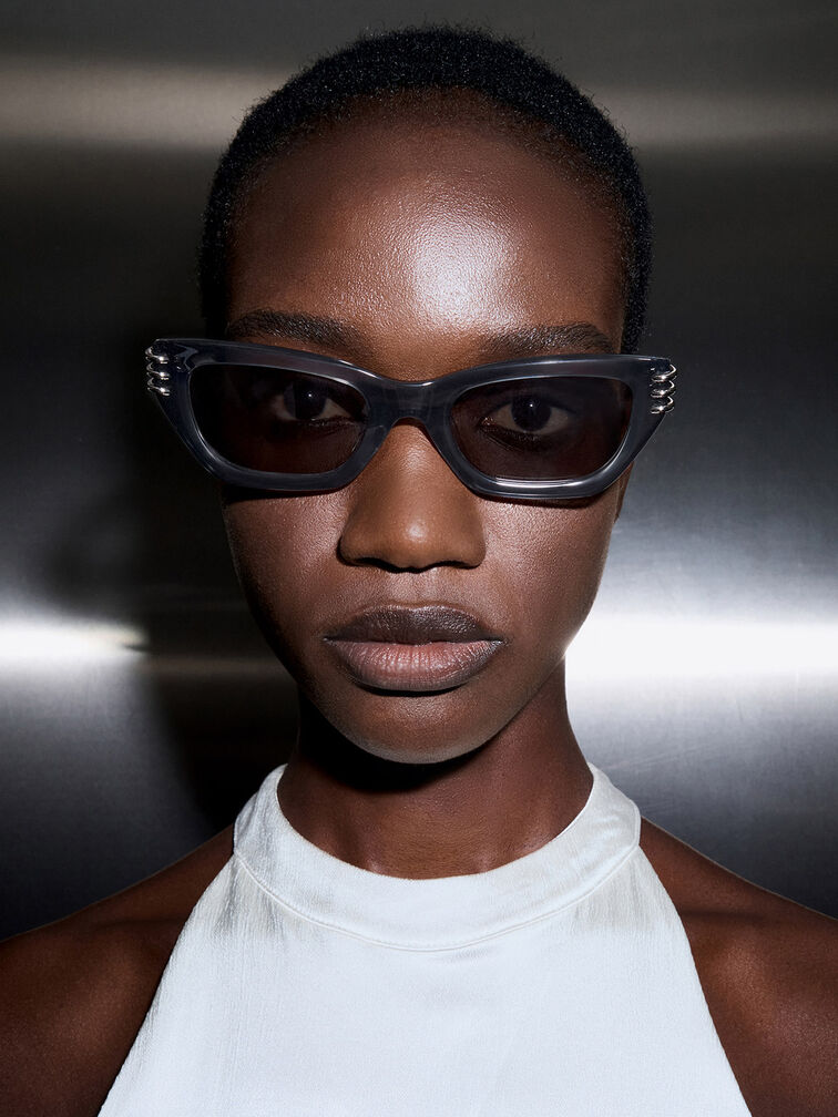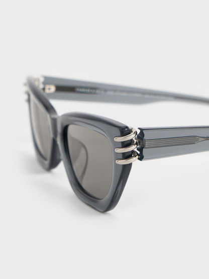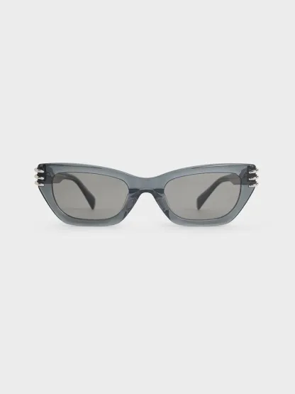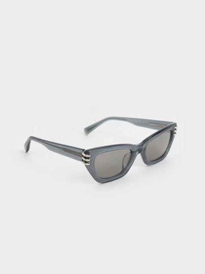 Metallic-Accent Angular Cat-Eye Sunglasses - navy