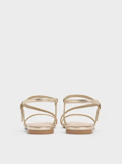 Metallic shoes are trending and these strappy sandals would be a great addition to your collection. Featuring elegant curving straps that wind around the feet, their glamorous light-gold finish makes them stand out. Secured with buckled ankle straps, these versatile everyday shoes will match well with most outfits while making a subtle statement.