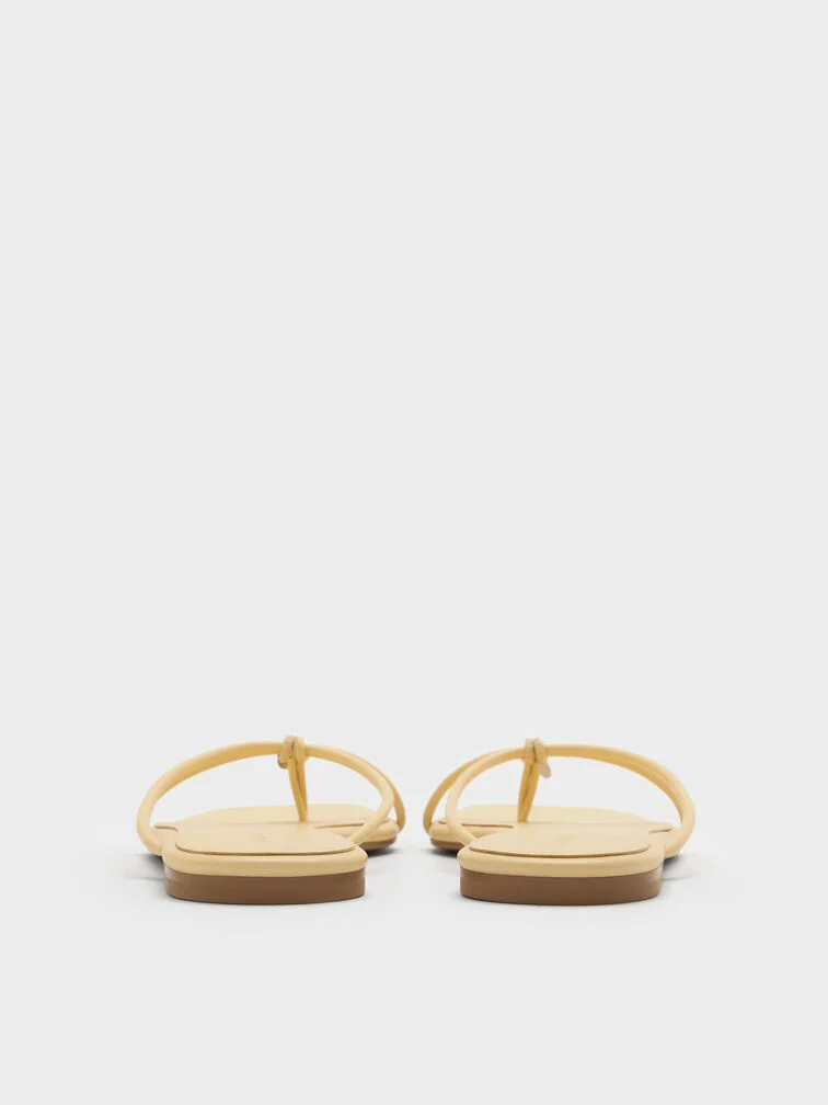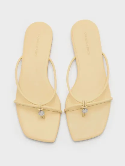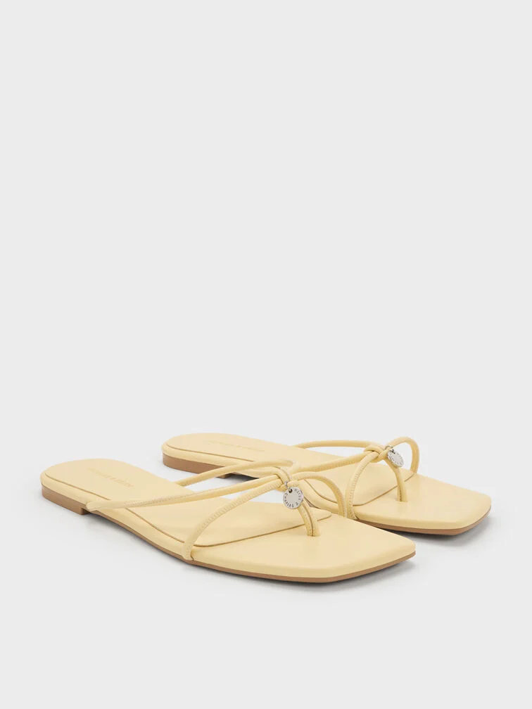 These thong sandals in yellow feature barely-there strappy uppers, metallic charms and flat soles. Perfect for the weekends and vacations, they will complete your off-duty and travel looks with practicality and sophistication.