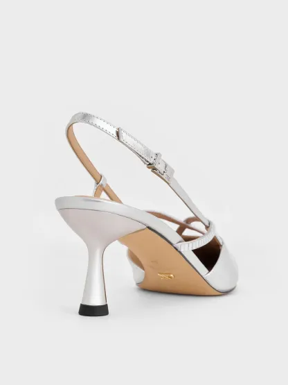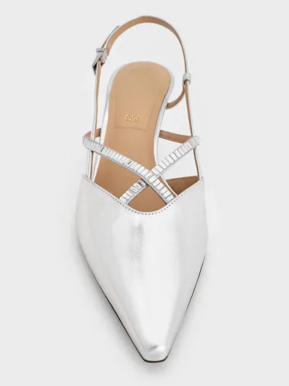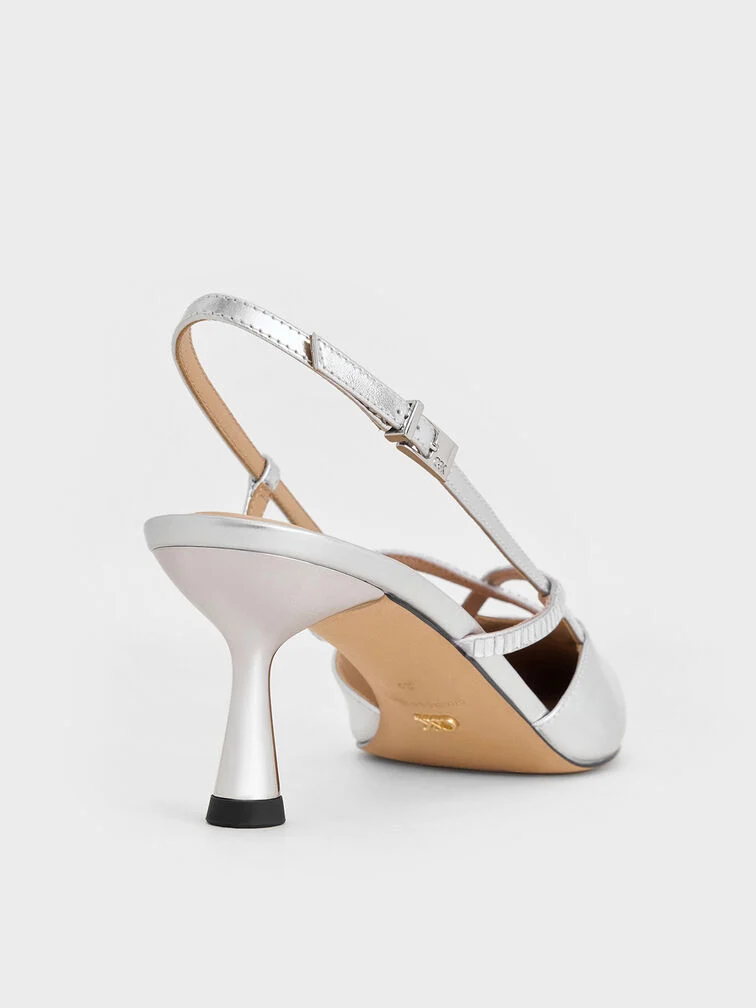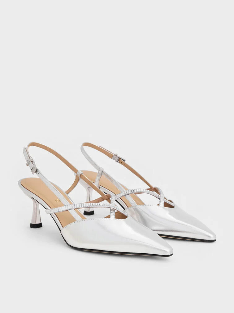 Make a striking statement in silver. These slingback pumps, featuring crystal-embellished criss-cross straps, deliver glamour in spades -- perfect for the year-end party season. With classic pointed toes and adjustable slingback straps, they adapt to various dress codes while offering a snug, personalised fit. The sturdy flared heels provide a stylish height boost without compromising comfort, ensuring you can outlast your family and friends on the dance floor.