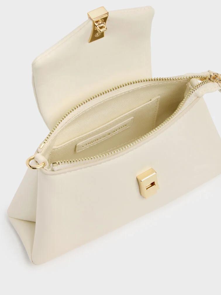 This micro Lilibet top handle bag in cream features an envelope flap with a metallic push-lock clasp, a top handle and a detachable, adjustable shoulder strap. Pair it with the Lilibet top handle bag for a charming bag-on-bag look.