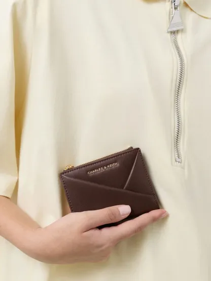 This Midori wallet in espresso brown features a geometric panelled finish, a compact silhouette and a secure top-zip closure. It is a great everyday wallet that will keep your essentials organised while maintaining a clean and understated aesthetic.