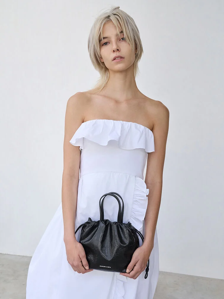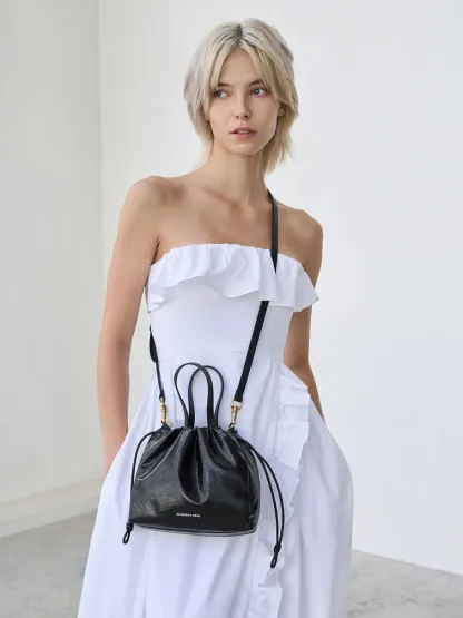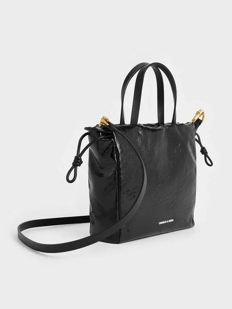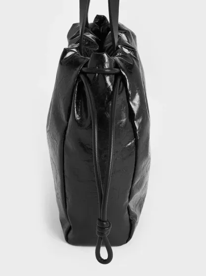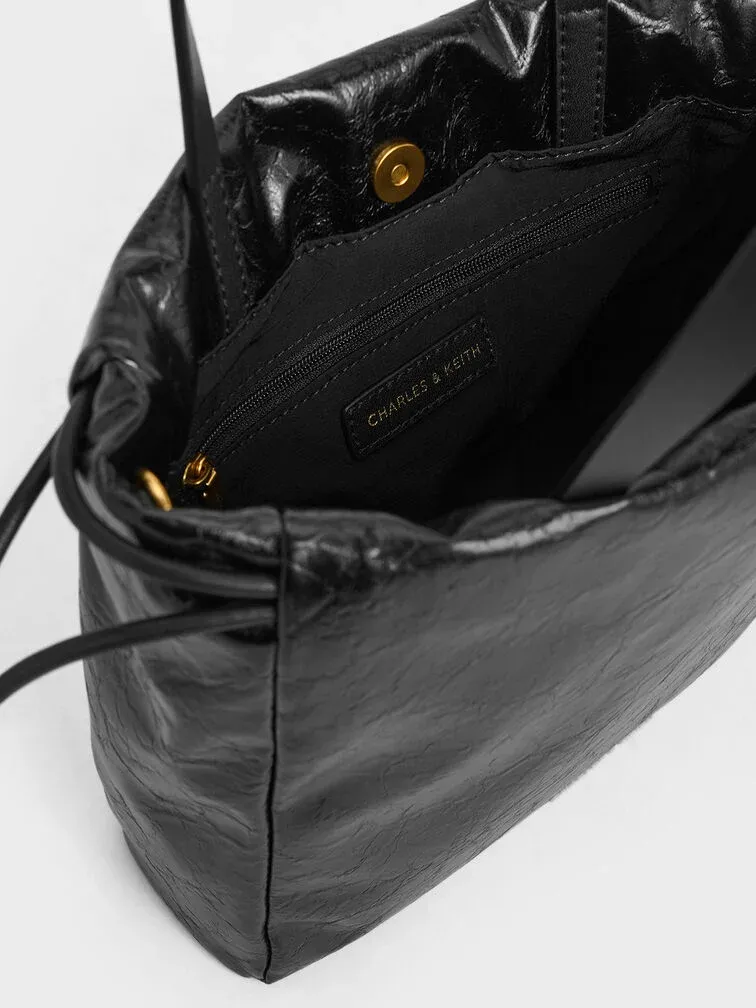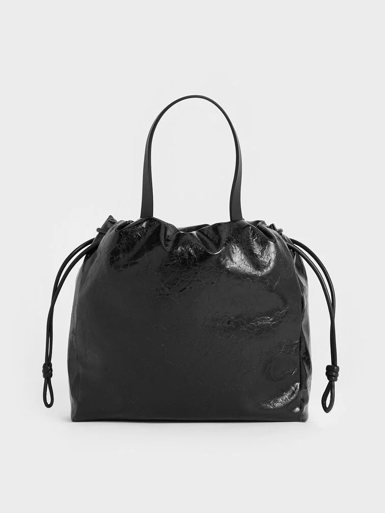 Look no further for a chic alternative to your canvas tote. This piece features a magnetic snap closure reinforced by a drawstring, ensuring your belongings are safely stowed yet easily accessible. It also boasts long top handles for effortless carrying and an adjustable strap that can clipped on whenever you need to keep your hands free. This small-sized tote is just big enough for your daily essentials, making it the perfect companion for those who embrace travelling light.