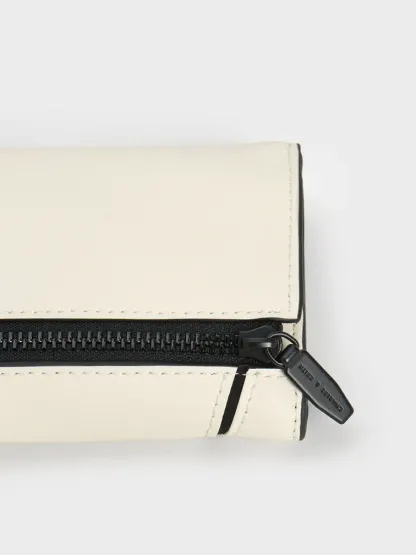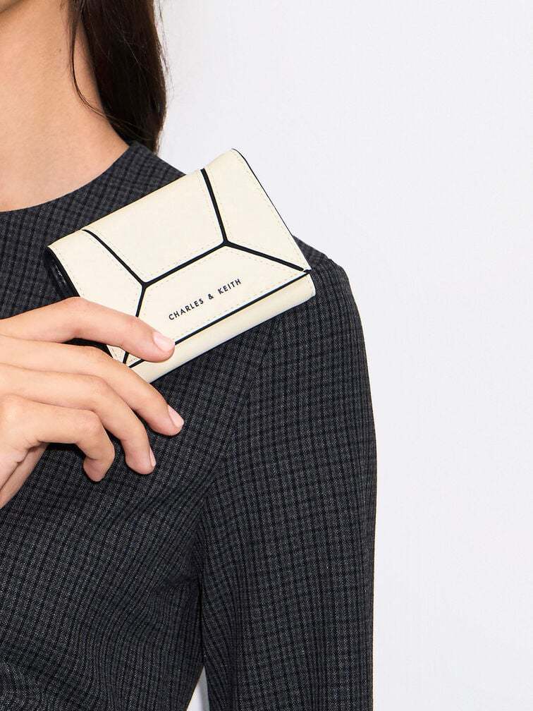 This Nasin wallet is every bit as eye-catching as it is functional. Featuring a compact rectangular silhouette that will fit nicely in your hands and pockets, this piece features unique geometric panels stitched together by black trims that create a striking contrast with the all-white exterior. This wallet opens up to a well-compartmentalised interior that will keep your cards, cash and coins neat and organised.