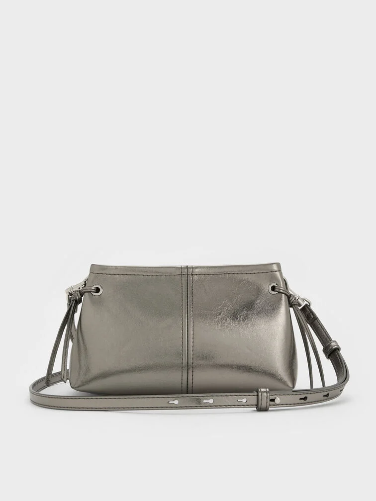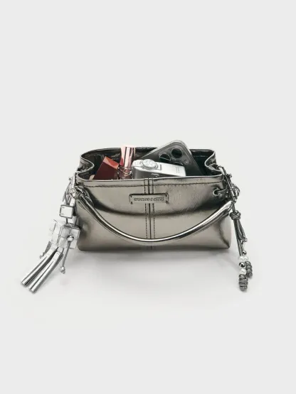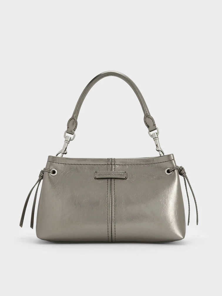Noane Metallic Top Handle Bag - pewter