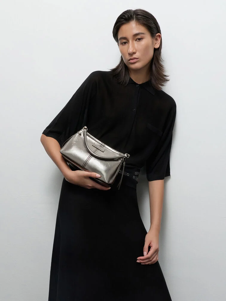 Thanks to its pewter finish, this Noane metallic bag is subtly striking yet not over-the-top, making it suitable for daily use. It features a versatile top-handle design that comes with a longer shoulder strap so you can go hands-free with ease.