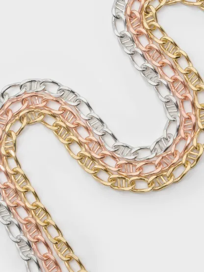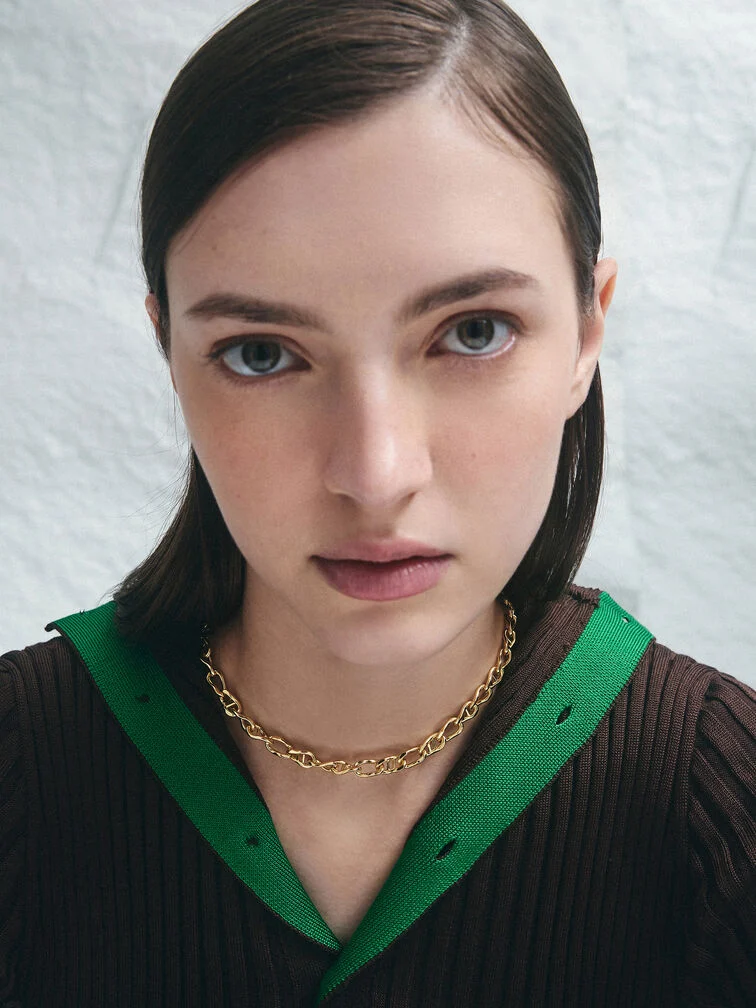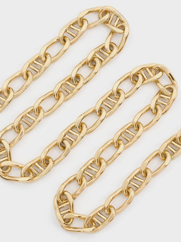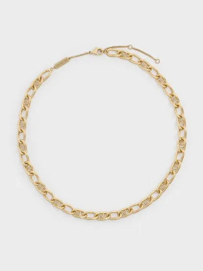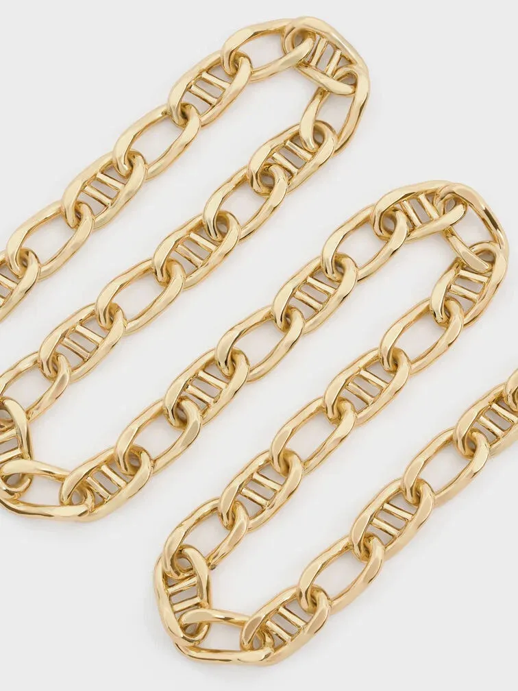 Featuring interlocking mixed chain links, this Nyra chain necklace in gold will be one of the most versatile jewellery pieces in your collection. Wear it as a chunky statement piece on its own or layered with other necklaces.