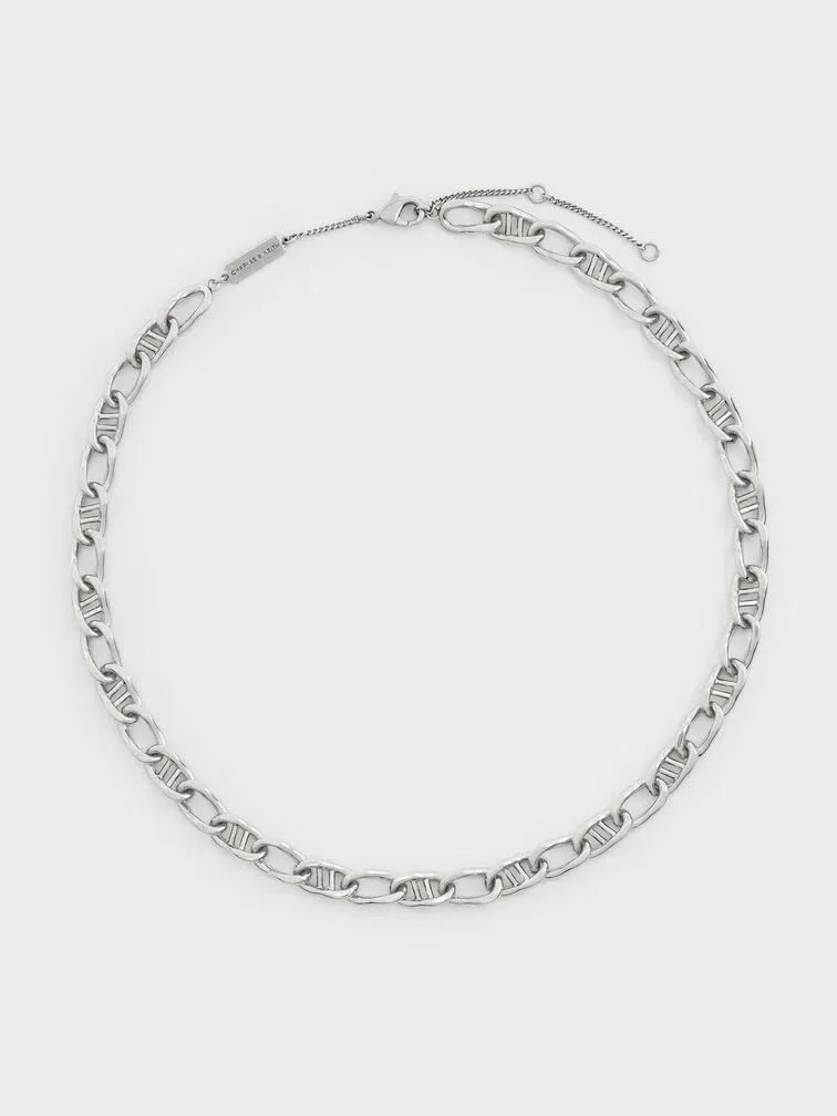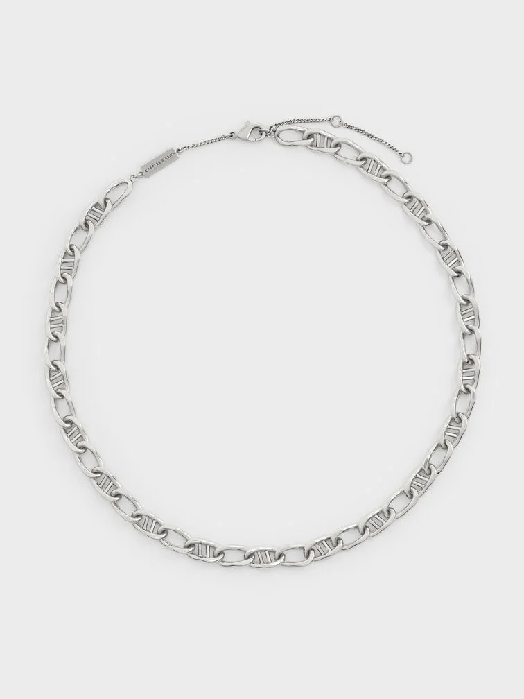 This Nyra chain necklace in silver is the perfect addition to your jewellery collection -- it will add the perfect amount of edge and shine to any look. Wear it as a chunky statement piece on its own or layered with other necklaces.