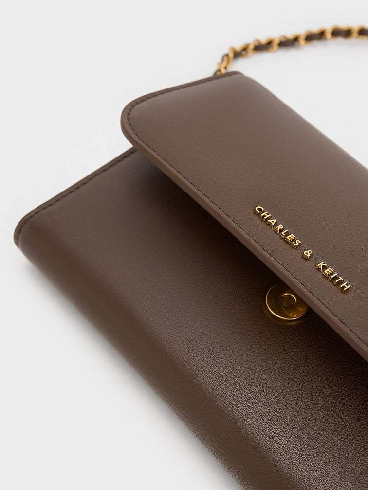 For a chic and versatile alternative to black, consider dark brown as the new neutral that will add elegance and opulence to your cold-weather wardrobe. This Octavia long wallet embodies classic style with its sleek rectangular silhouette and front flap design. It features two gusseted compartments, one inner zip compartment, and four card slots, ensuring your valuables are safe, secure, and neatly organised. Additionally, it comes with a detachable strap, allowing you to transform this long wallet into a cute crossbody bag.