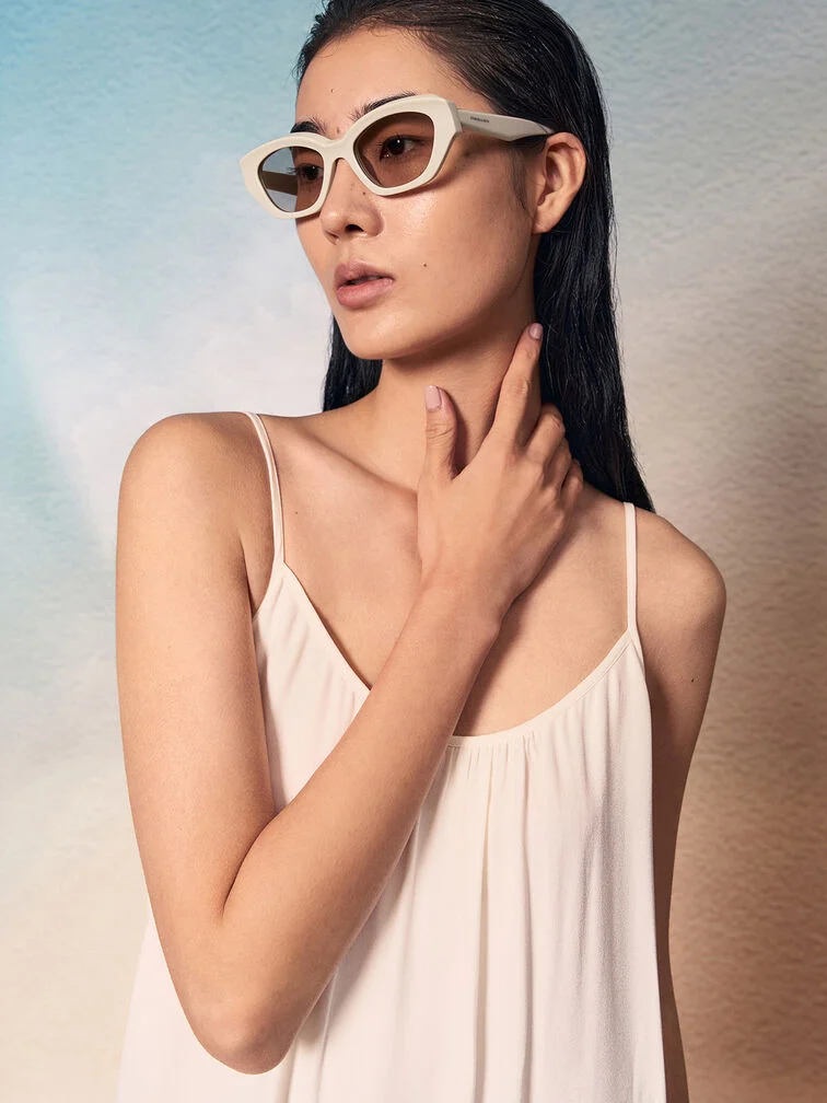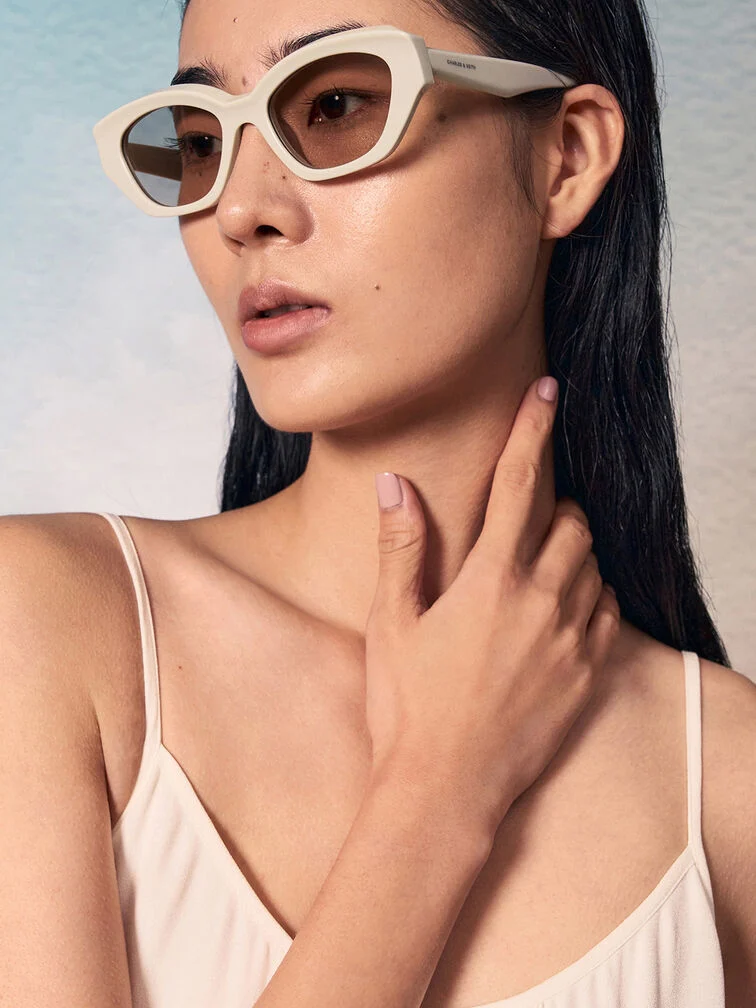 Equal parts sleek and sophisticated, these cat-eye sunglasses in chalk white are designed to bring out your inner cool girl with minimal effort. The sharp, angular frames create a bold look that will add definition to your face. Complete with subtly tinted lenses, they offer optimal UV coverage for both indoor and outdoor wear.