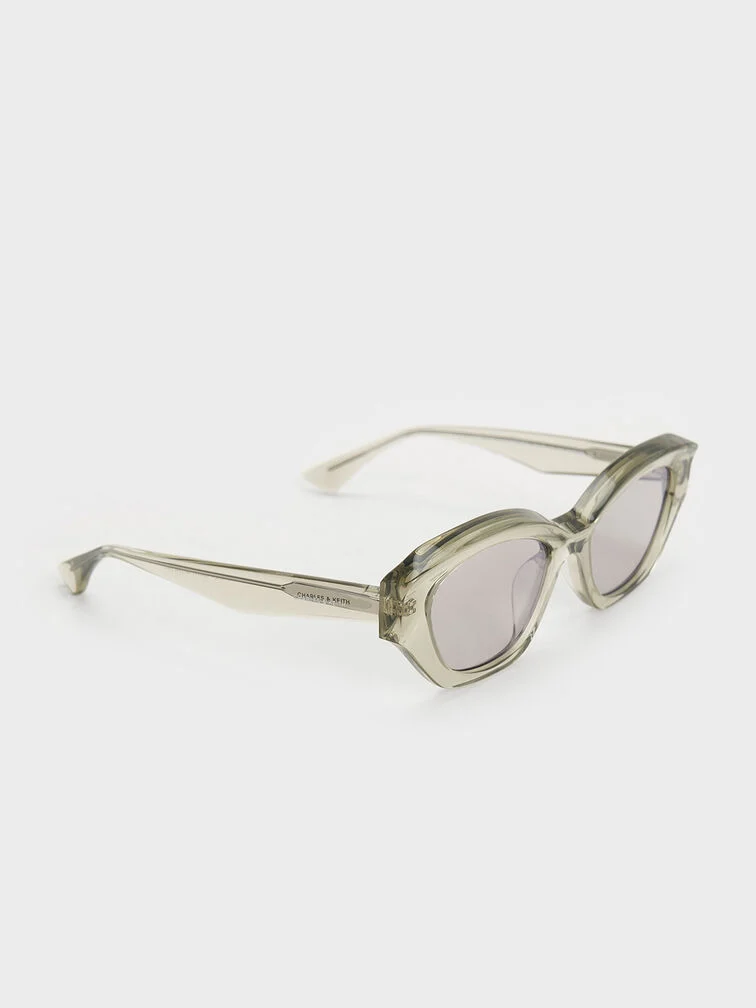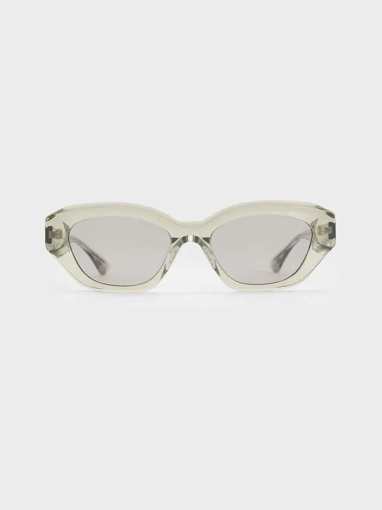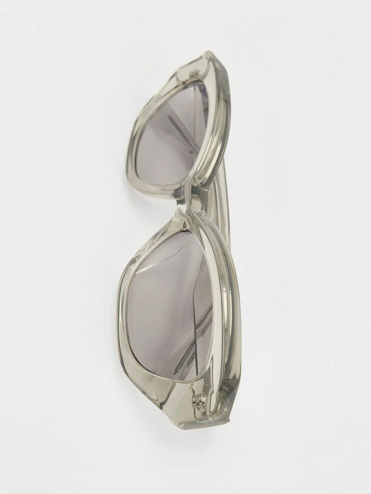 Exude cool-girl energy with these cool-grey cat-eye sunglasses. The sharp, angular frames create a bold look that will add definition to your face and flatter its shape. Plus, the see-through design adds a chic touch to the sunnies. Complete with tinted lenses, rest assured they provide optimal UV protection.