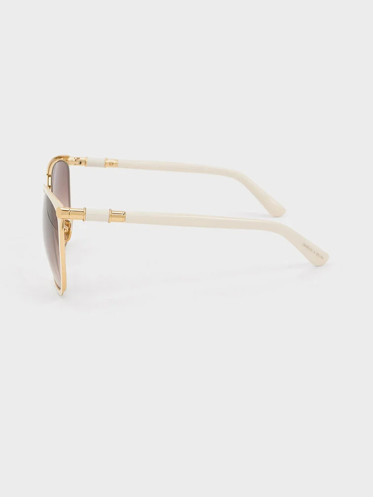 In a versatile shade of cream, these sunglasses will effortlessly complement every item in your wardrobe. Whether you are creating an effortlessly stylish airport look or a chic and laid-back beach outfit, this pair is a reliable choice. The oversized tinted frames not only add a touch of sophistication but also ensure your eyes stay well-protected, whether you're indoors or outdoors. Additionally, these sunglasses come with fitted nose pads that offer enhanced comfort for extended wear.