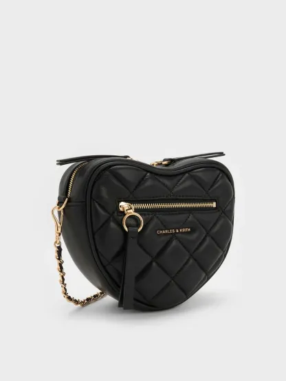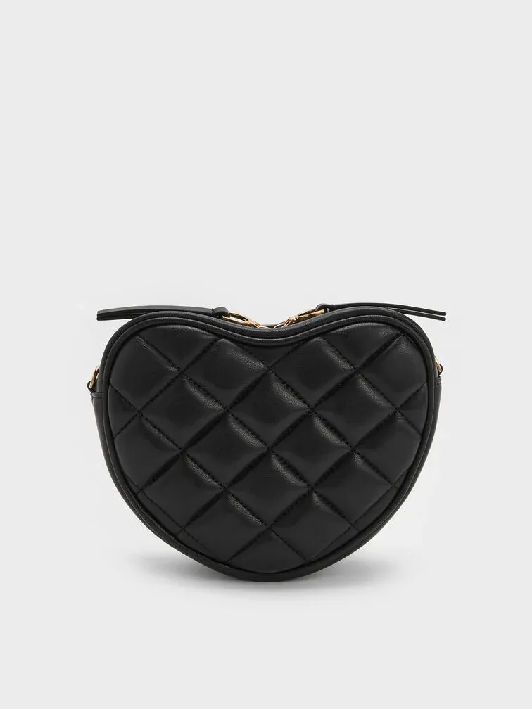Paffuto Quilted Heart Crossbody Bag - black