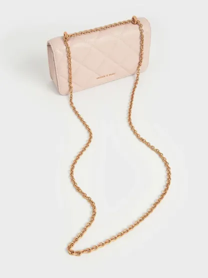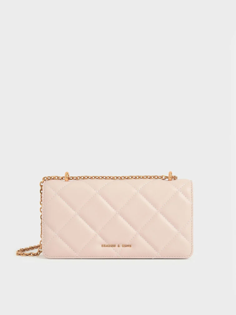 Quilted to perfection and finished in an elegant powder pink hue, our Paffuto long wallet brings an elevated alternative to your quotidian ensemble. Compact enough to fit into any bag, it is also spacious enough to carry your daily essentials around with ease. Attach the chain handle and it can instantly fly solo as a micro bag. We would love to see you style it with a smock dress and pointed-toe mules for a graceful look.Product Details & Care Instructions