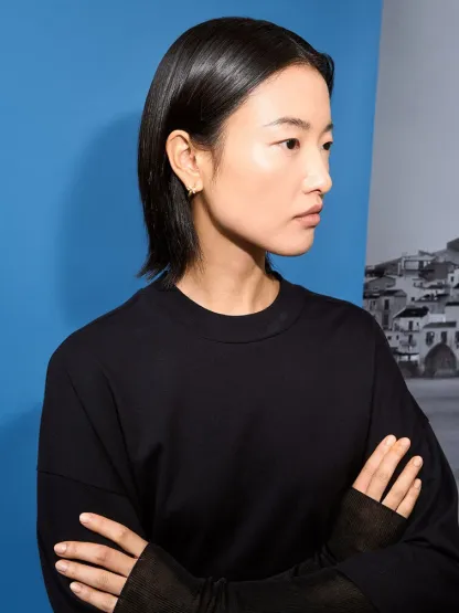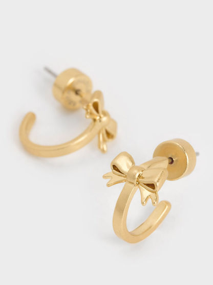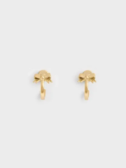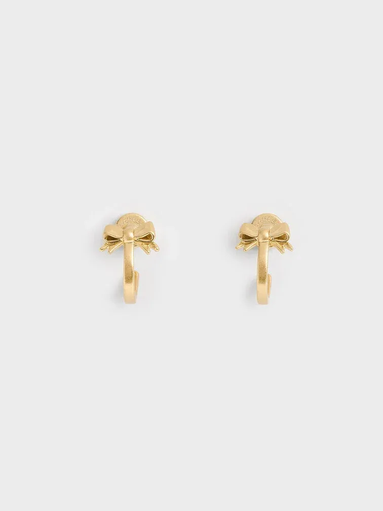 Add a touch of the coquette aesthetic to every ensemble with this pair of Paige ribbon earrings. Featuring dainty ribbon motifs on brushed gold-toned hoops, the result is an understated piece that exudes feminine charm. Affixed with secure stud closures, this pair is an easy everyday accessory that you wear it on its own or with the matching Paige ribbon necklace and ring.