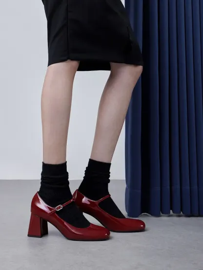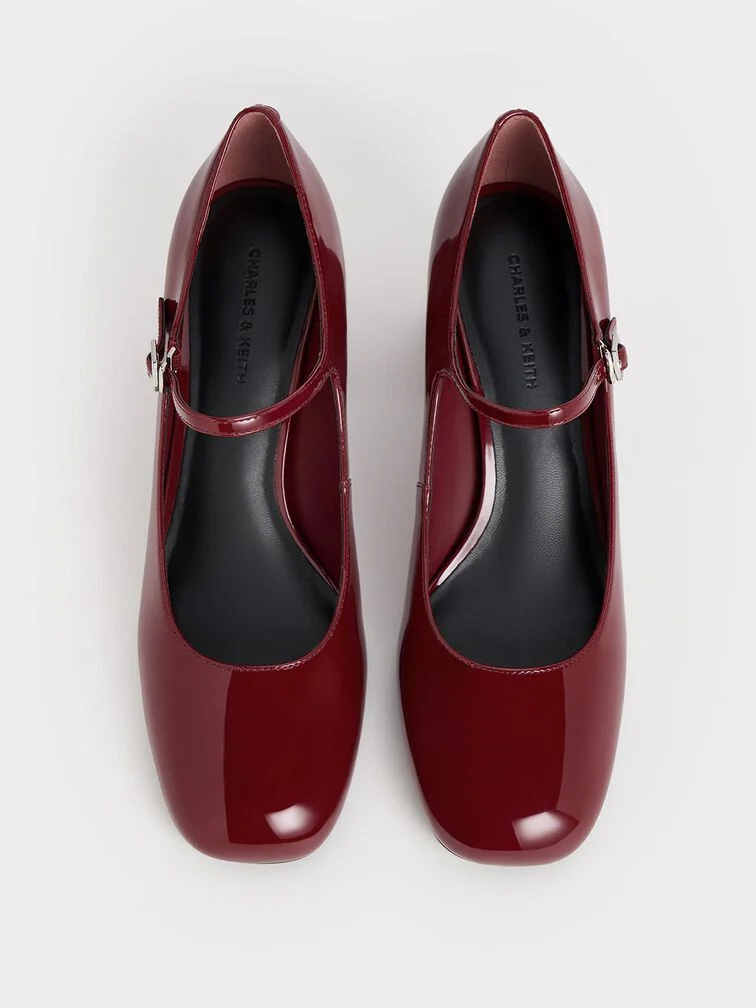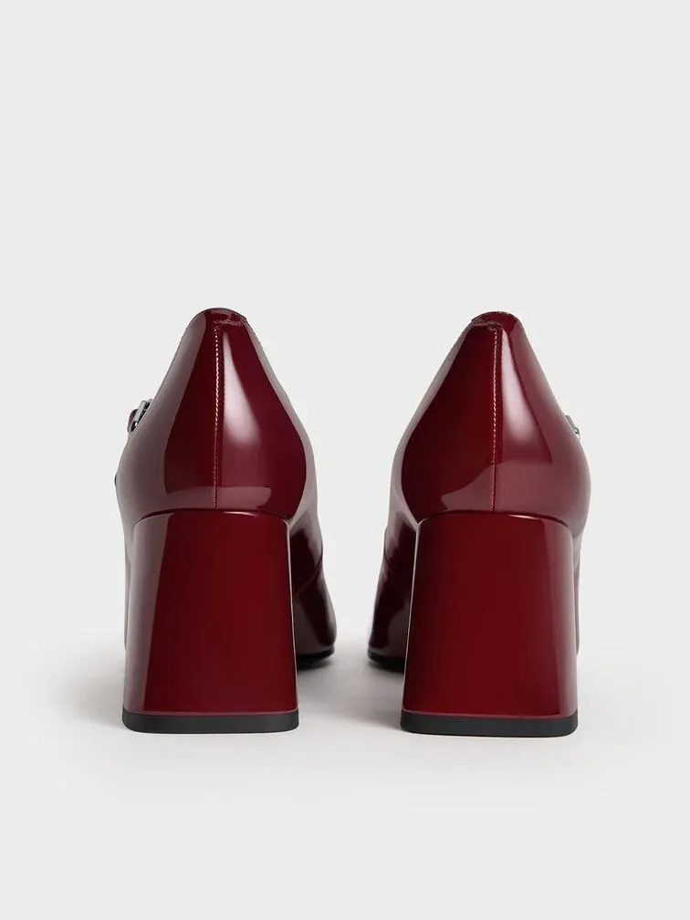 Maroon is having a moment this season, and these Mary Jane pumps enhance its enduring appeal. The classic silhouette is rendered in a shiny patent finish, which gives the Mary Jane style a modern refresh. Set on sturdy block heels, they will polish up your look while providing a comfortable fit. Whether you pair them with white socks or printed ones, they will introduce a touch of romantic charm to your outfits.