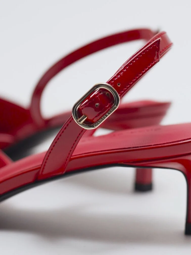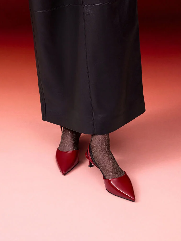 Patent Pointed Slingback Kitten Heels - red