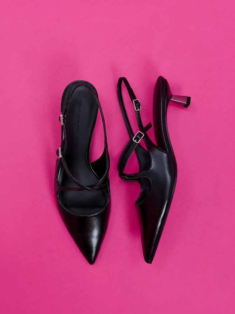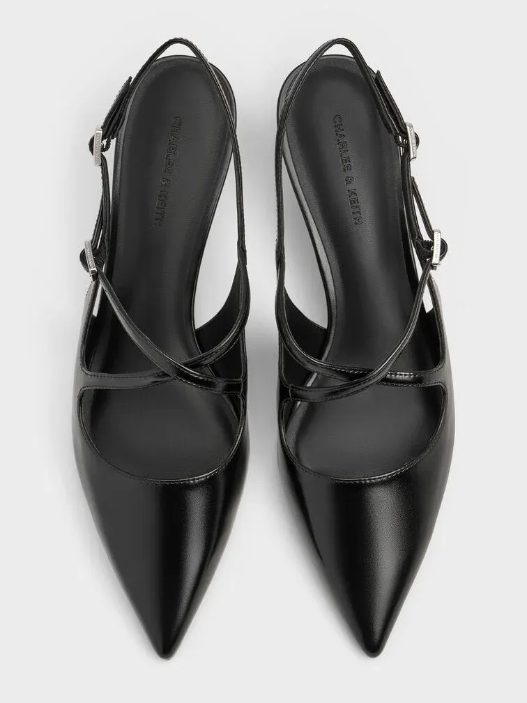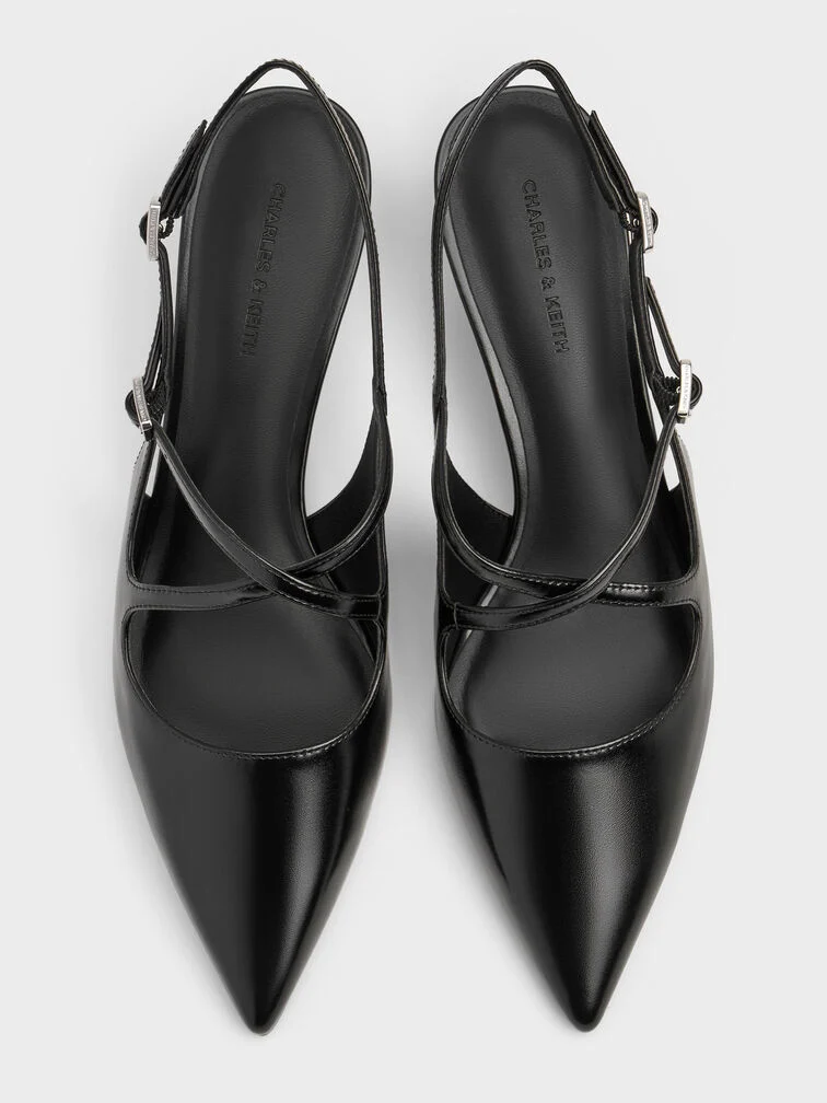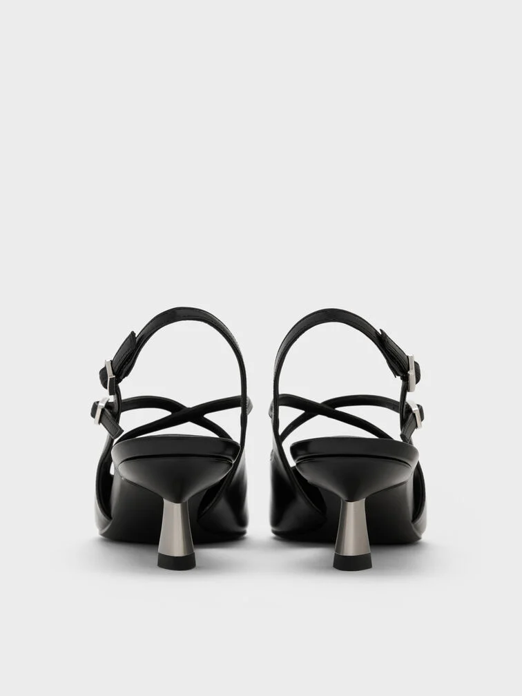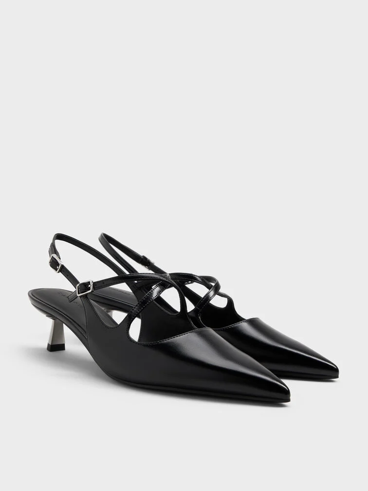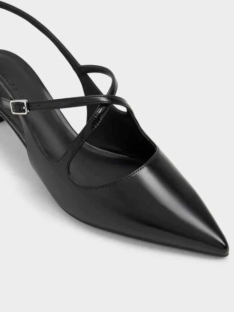 In versatile black, these Pauline slingback pumps are perfect for work, play, and everything in between. Their pointed-toe silhouette looks effortlessly polished, while the crossover straps add a touch of visual interest to the classic design. Let them introduce a subtle edge to any look.