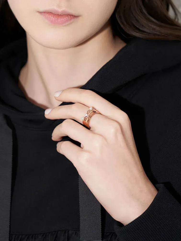 Add a bit of whimsical charm to your outfit with this eye-catching pearl and crystal embellished ring. With a sweet rose gold-toned finish, this ring is fitted with complementary pink crystals for an extra feminine touch. Thanks to its asymmetrical wide band and visually interesting pearl and crystal placement, this accessory will elevate your style game in an instant.