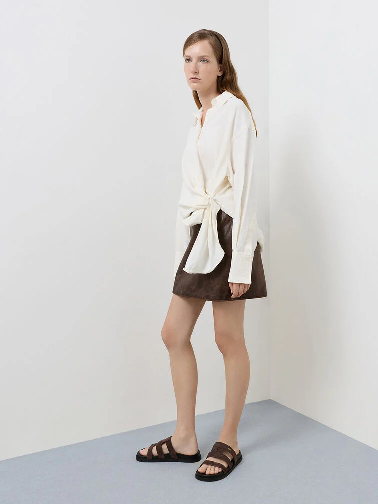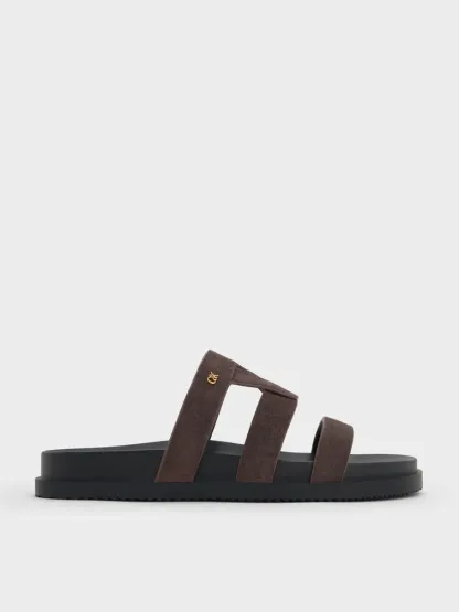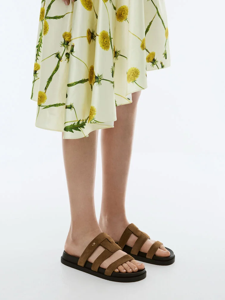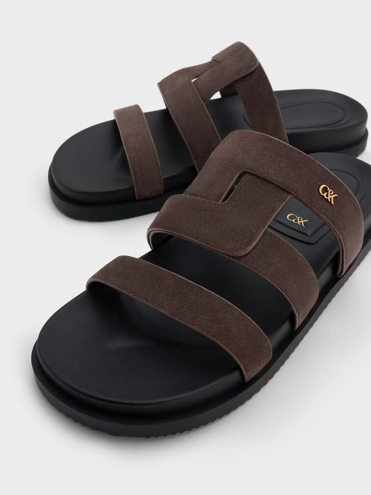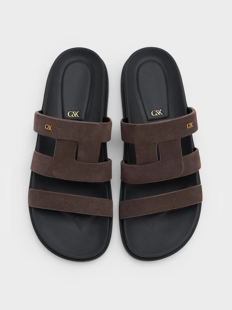 These Petina flatform sandals in dark brown are made with suede and feature broad interlocking straps, open toes and flat soles. Pair them with relaxed linen pieces for a comfortable yet polished weekend outfit.