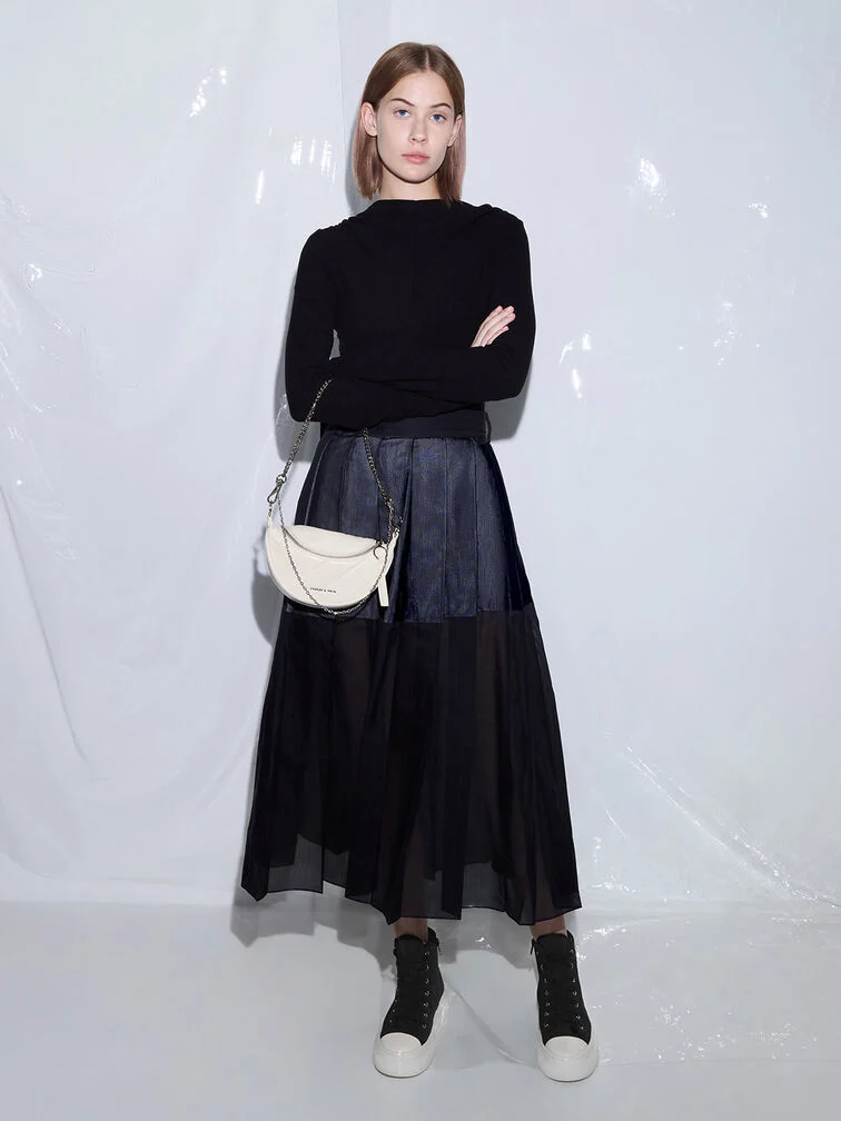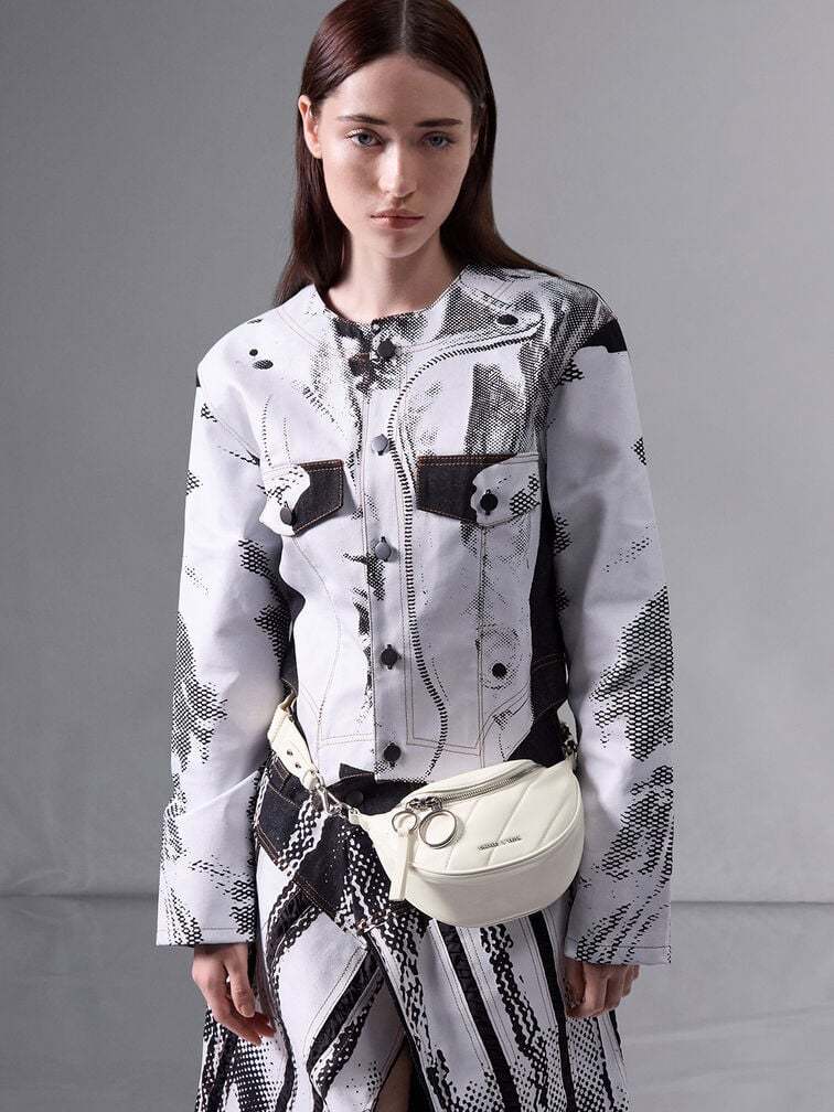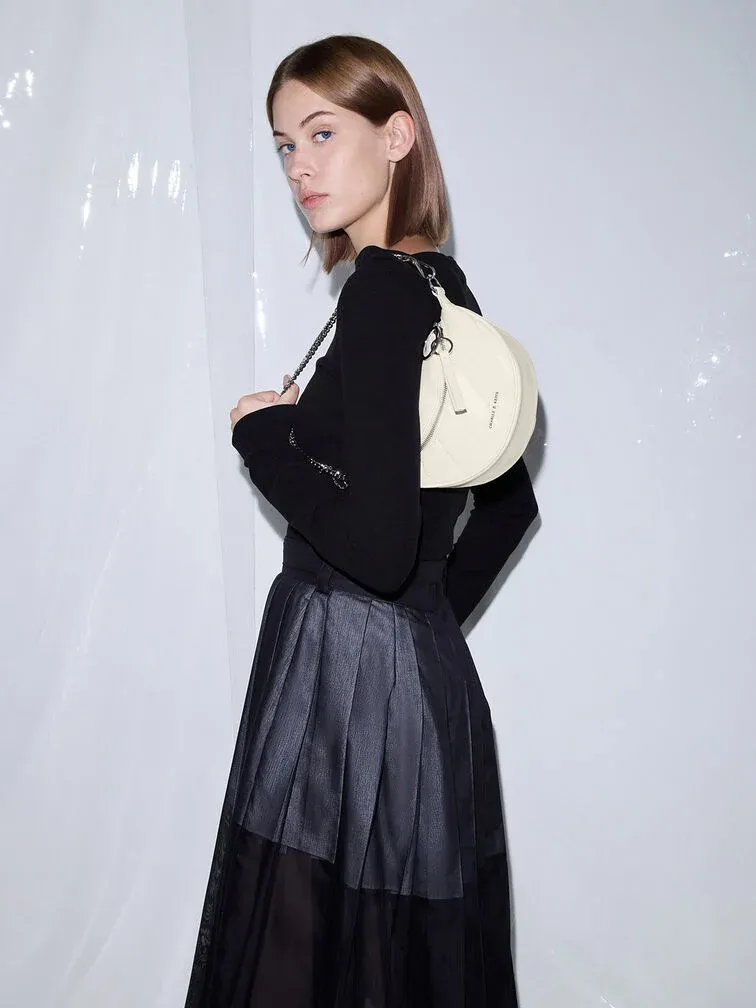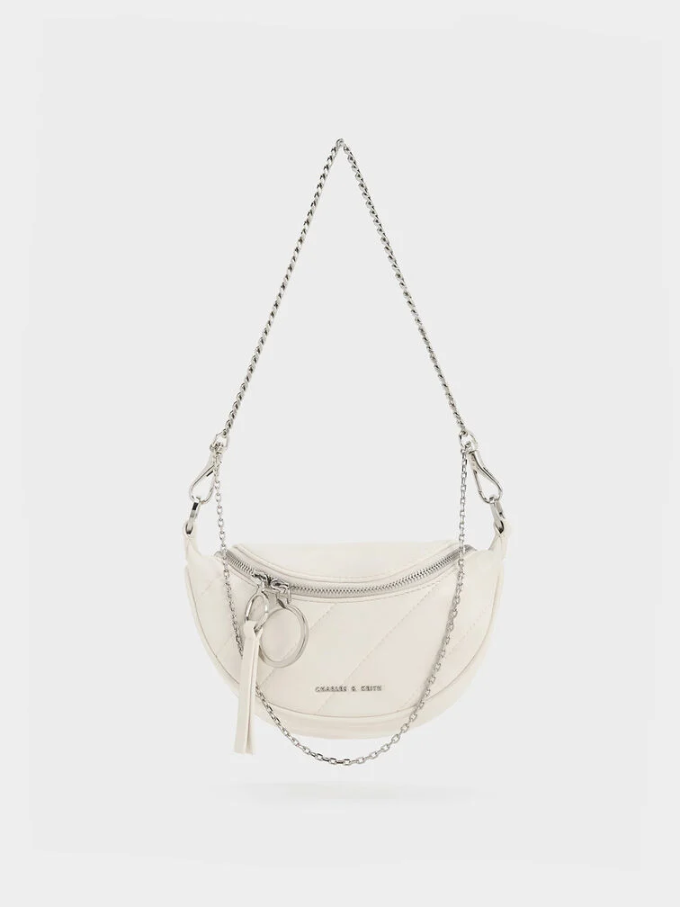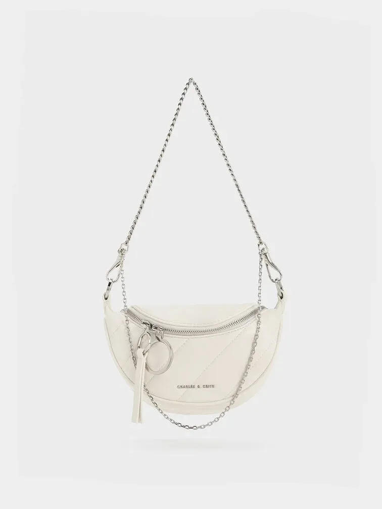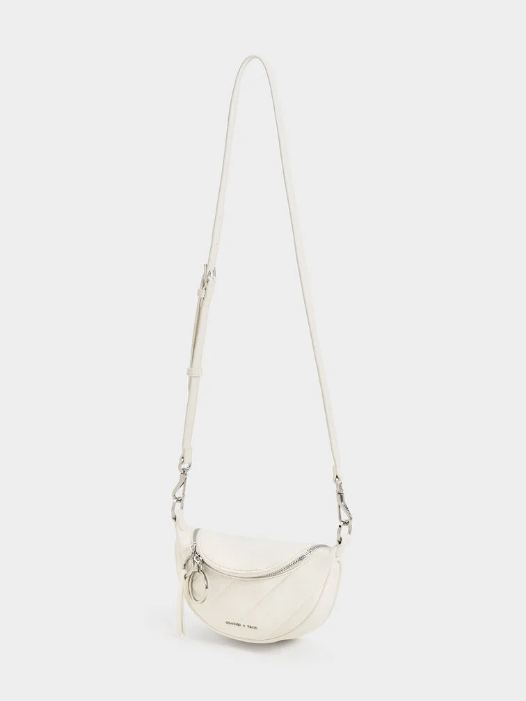 The half-moon bag is well-loved for its elegant, contemporary silhouette, and the Philomena puts an edgy twist on this classic design. With silver-toned hardware and a slanted quilted panel design, the Philomena will add textural interest and dimension to your casual off-duty outfits. Keep your hands free by simply attaching the adjustable strap and slinging it across your body.
