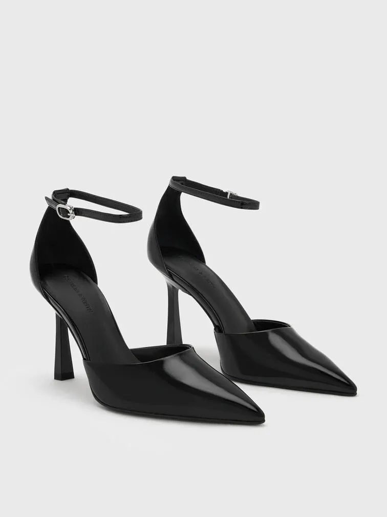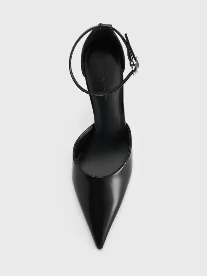 Pointed Ankle-Strap D'Orsay Pumps - black box