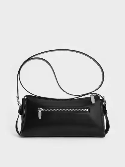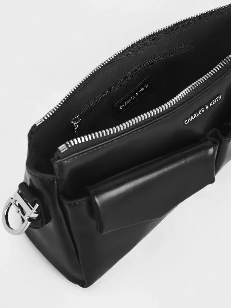 This Rachel bag in noir is a piece that deserves a spot in your wardrobe. Featuring an East-West design, this bag opens up to a roomy main compartment that will easily hold your everyday essentials and more. Along with two front pockets and a back zip compartment, you will no longer have to rummage through your bag -- each item will have a place to belong. The ultra-minimalist design makes it the perfect piece on which to hang your favourite bag charms and show off your personality.