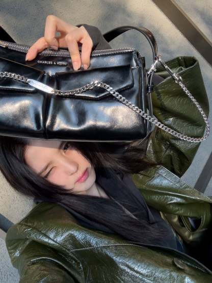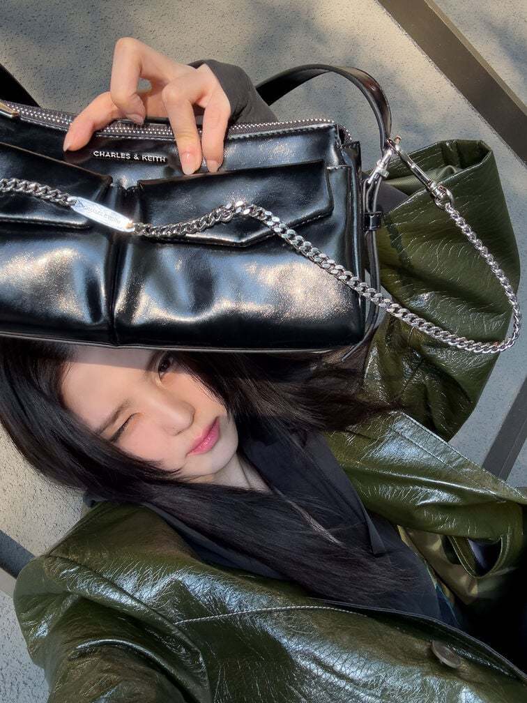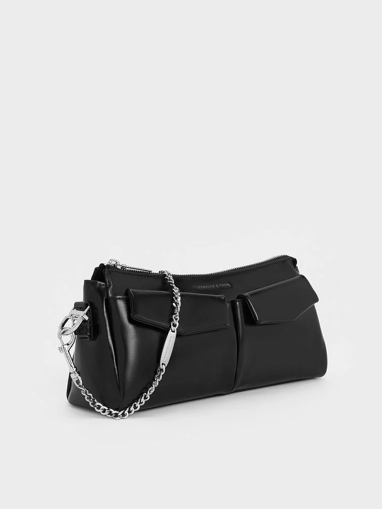 Rachel Front-Pocket Chain Shoulder Bag - noir