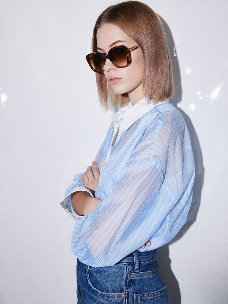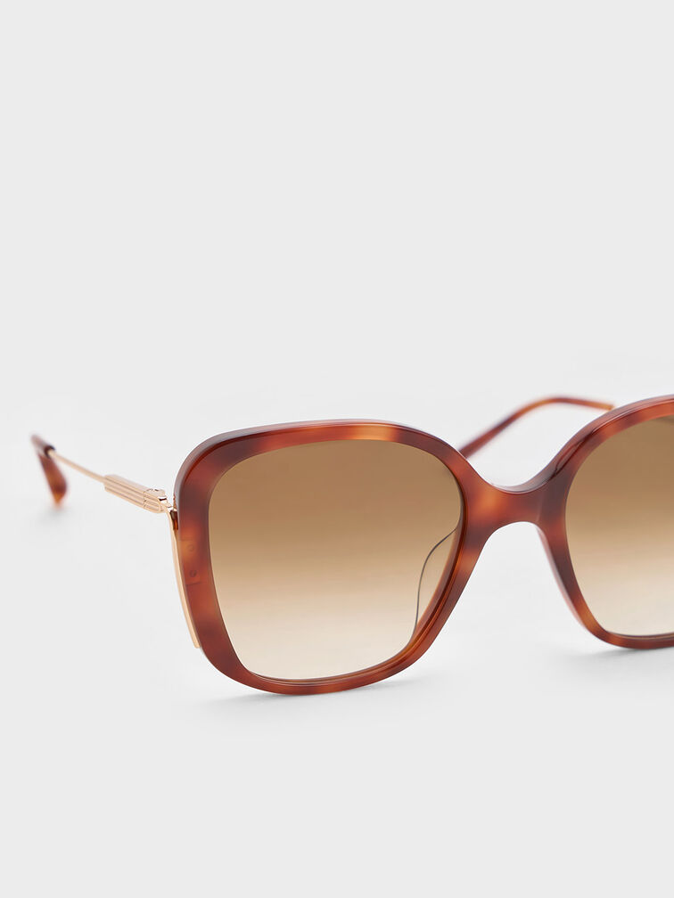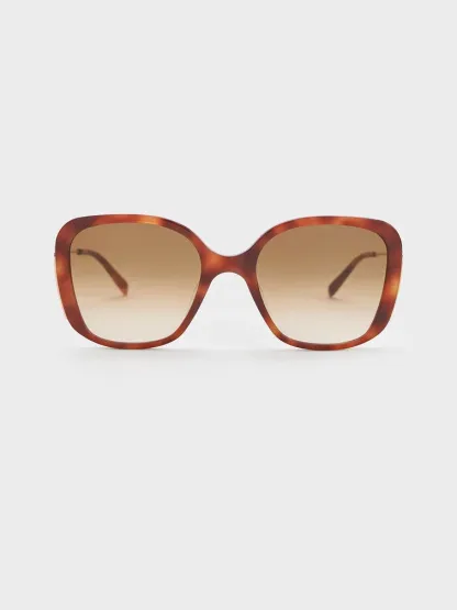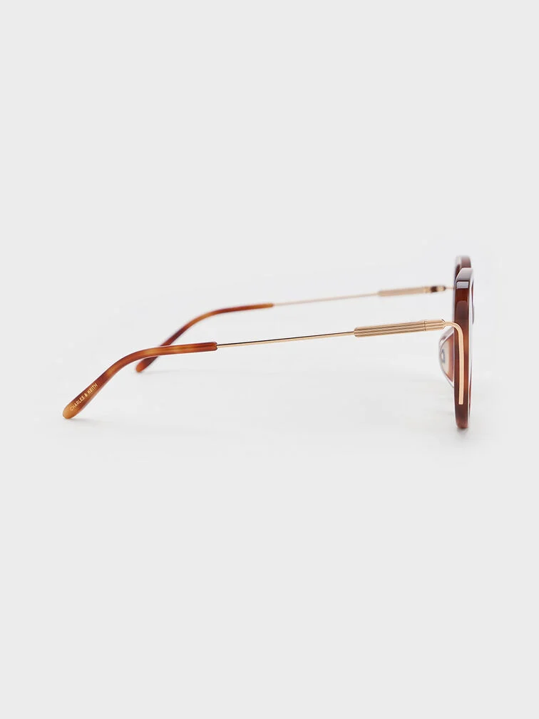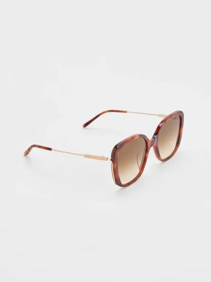 Adorned with classic tortoiseshell frames, these butterfly sunglasses make an elegant statement. The thick frames are beautifully contrasted by sleek metal wire temples, adding a touch of glamour to the design and ensuring a balanced aesthetic. Thanks to their oversized silhouette, these shades provide optimal sun protection while offering the added benefit of making your face appear smaller.